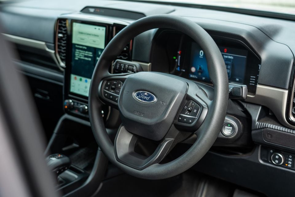Ford’s easy inside design language – dominated by onerous edges and easy shapes – interprets properly on this stripped-back Ambiente software, and it’s extra habitable than many of the ladder-frame off-road SUV competitors.