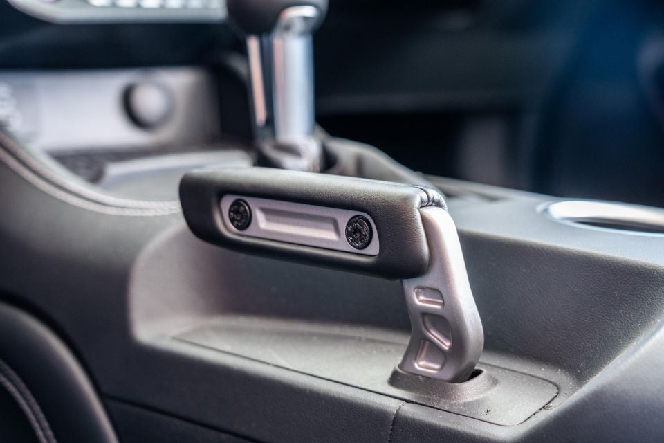 The parking brake lever seems to be cable-operated, but it surely’s truly electrical. It’s unlucky that it feels considerably flimsy and unintuitive to function, whereas the automobile’s left-hand drive origins imply it’s on the unsuitable facet of the centre console in Australia – it does double as a drift brake, although.