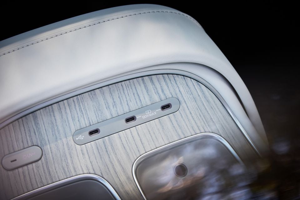 Facilities within the second row embody handbook window blinds, USB-C shops and local weather management, whereas storage is roofed by a sliding drawer within the centre console, map pockets, and respectable door bins.
