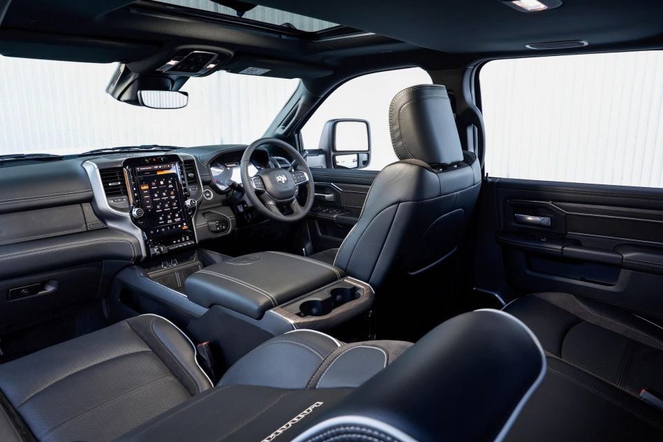 That is essentially the most premium heavy-duty Ram but bought formally in Australia. The entrance row gives two large leather-trimmed bucket seats flanking a full-length multi-layer centre console, and that includes heating and air flow, eight-way energy adjustment, and driver’s reminiscence.