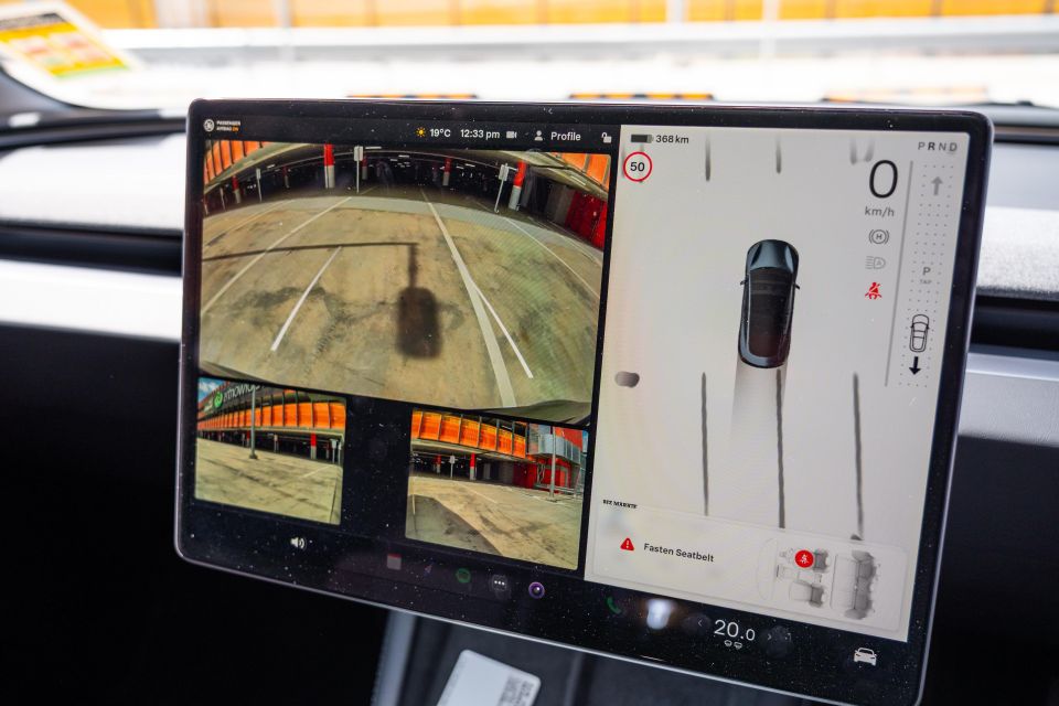 That mentioned, the parking cameras are fascinating, given they present video feeds and double up because the Mannequin 3’s parking sensors to color an image of the automobile’s environment.