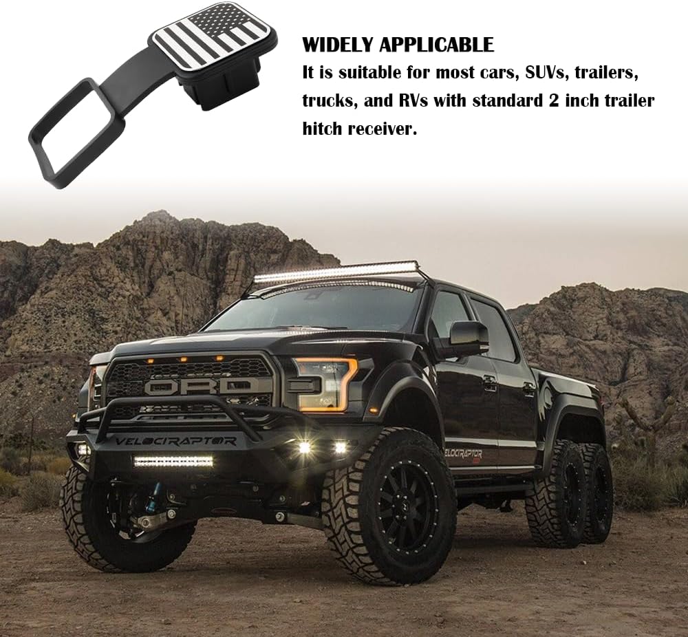 🚕 Dual Use of One Object: The surface of the trailer hitch covers adopt a unique flag of the United States design, which can greatly enhance the overall charm of the car exterior and show your perfect patriotism. Not only that, it can also protect your trailer hitch from dust and water stains during long journeys. Extend the service life of truck accessories.