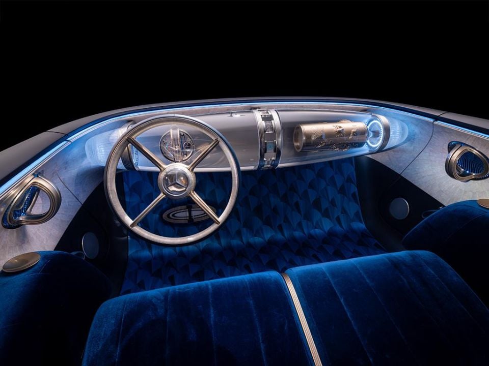 This ‘hyper-analogue’ strategy is seen contained in the Imaginative and prescient Iconic present automobile, with an Artwork-Deco impressed ‘floating Zepplin’ centre glass display screen designed to permit “interaction of analogue and digital devices”.