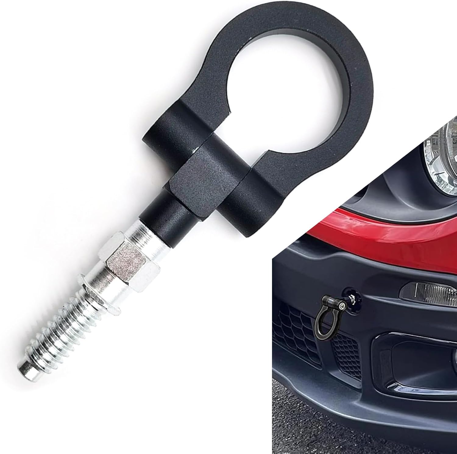 icykale 1 PC Car Front Bumper Tow Hook Pull Ring, Alloy Screw-in Installation Disassemble Foldable Portable Tow Hook, Tow Ring Modification Accessories, Towing Aid Tool for Most Cars (Black)