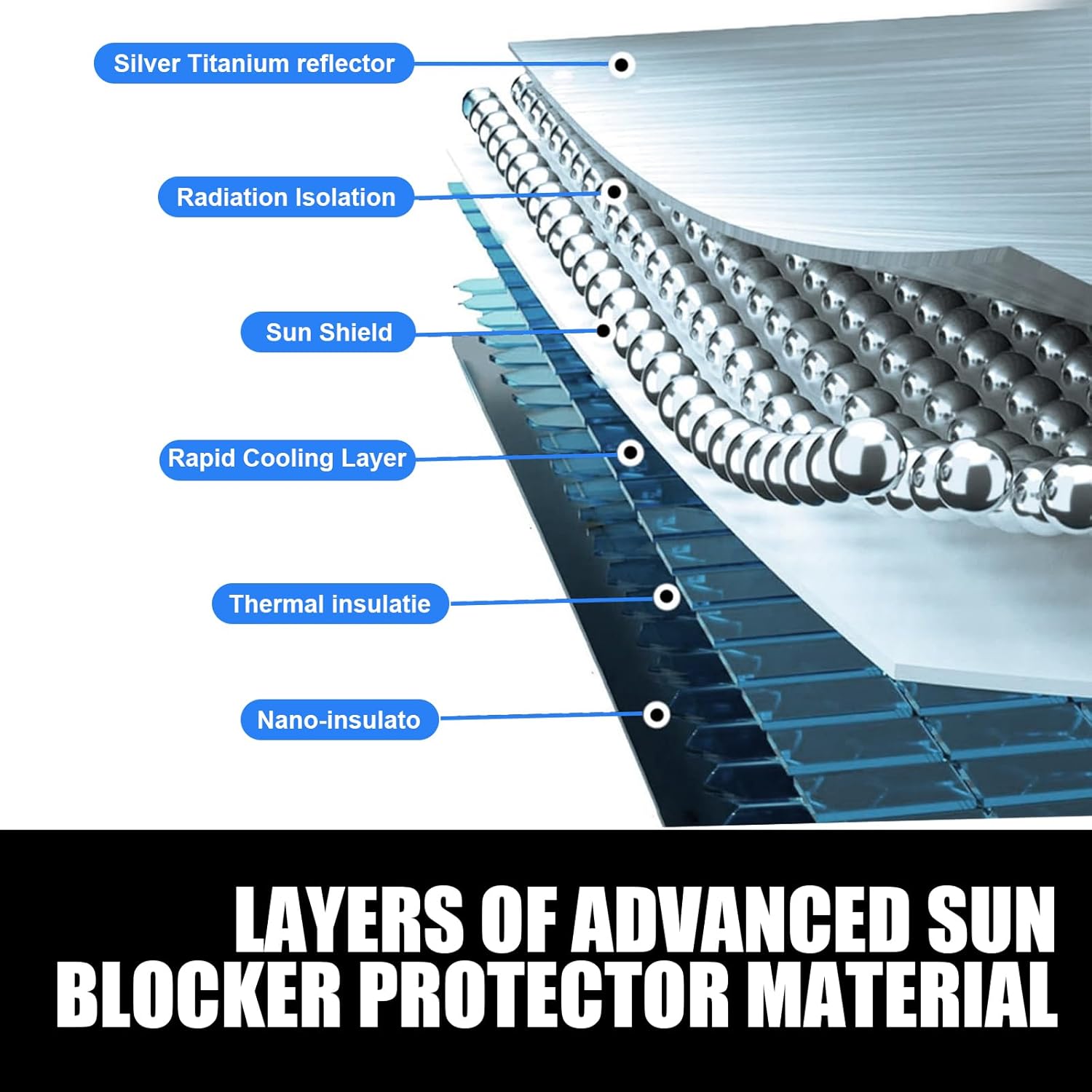 Sunscreen and Heat Insulation Function: The titanium silver cloth material is used, which has excellent heat insulation and sunscreen effects, can effectively reflect sunlight, reduce the temperature in the car, and protect the interior decoration and seats from aging.