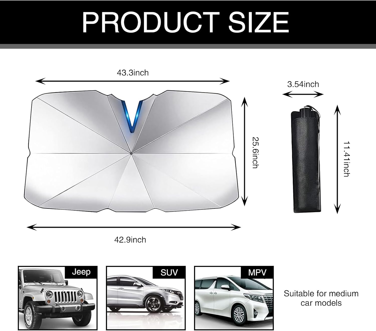 What You Will Get: You will receive a 57.08″ x 31.1″ open type car front windshield sunshade. This product is quick and easy to install, just unfold the visor and place it on your windshield to secure it so you can use it with confidence.