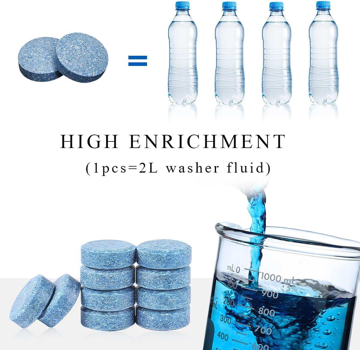 【Sufficient Quantity】: You will receive 100 pieces of concentrated windshield cleaning tablets, which are in sufficient quantity to meet your daily cleaning and replacement needs. They are small and lightweight, easy to carry, and you can also share them with others.