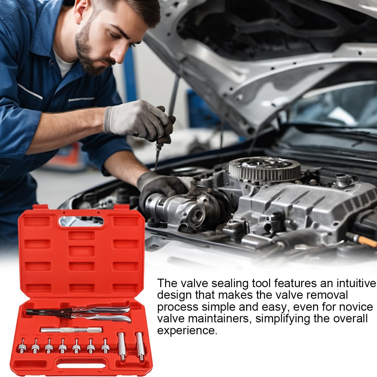 11PCS Car Valve Stem Seal Remover and Installer Tool Kit, Vehicle Valve Stem Seal Disassembly Plier with Drive Handle Socket Adapter, Auto Repair Maintenance Tool, Fit Most Engines