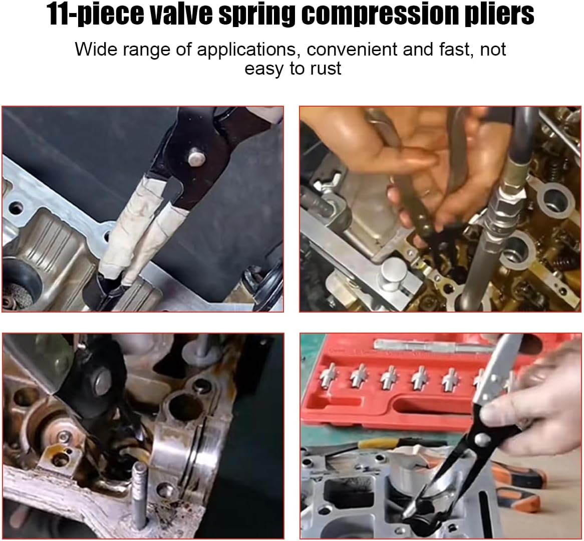 Broad Compatibility: The overall length of the valve plier is 10.63″, and the plier jaw length is 3.15″, the minimum clamping range is 0.29″. The adapter specifications are as follows: 5mm, 5.5mm, 6mm, 6.5mm, 7mm, 8mm, 3/8″. The two sockets suitable for oil seals ranging from 0.42-0.58″. Suitable for most car models, including sedans, trucks, SUVs, etc, fit for disassembling and assembling valve springs and valve oil seals, meeting diverse usage needs.