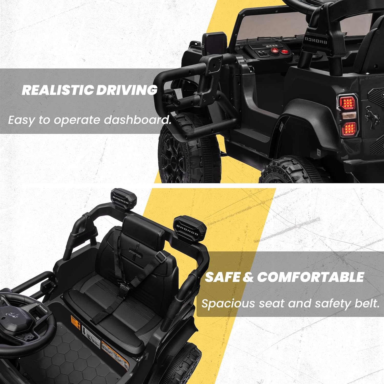 12v Ride On Truck with Remote Control Licensed Ford Bronco Raptor Electric Vehicle for Kids,Toddler Cars to Drive,Sefety Belt,Lockable Door,Slow Start,1.3-2.5 Mph,Bluetooth Music