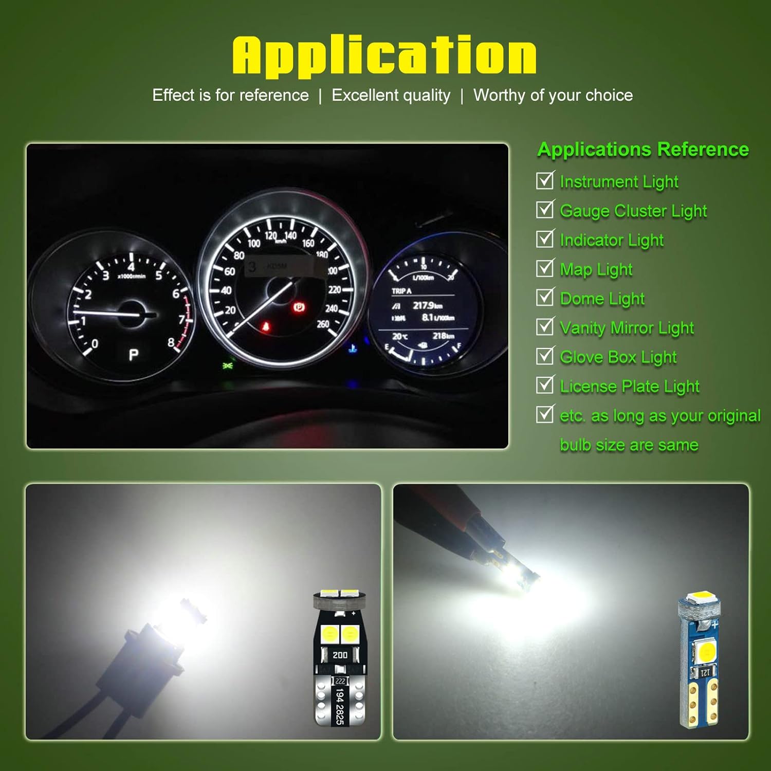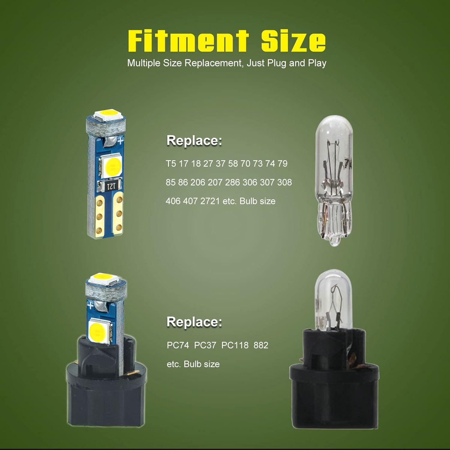 12V White T5 37 74 73 2723 2721 T10 158 168 194 2825 with Socket Instrument Cluster Light LED Bulb Replacement Dashboard Panel Gauge Indicator Lamp PC74 PC37 PC118 PC168 PC175 PC194 PC195 PC160 PC161