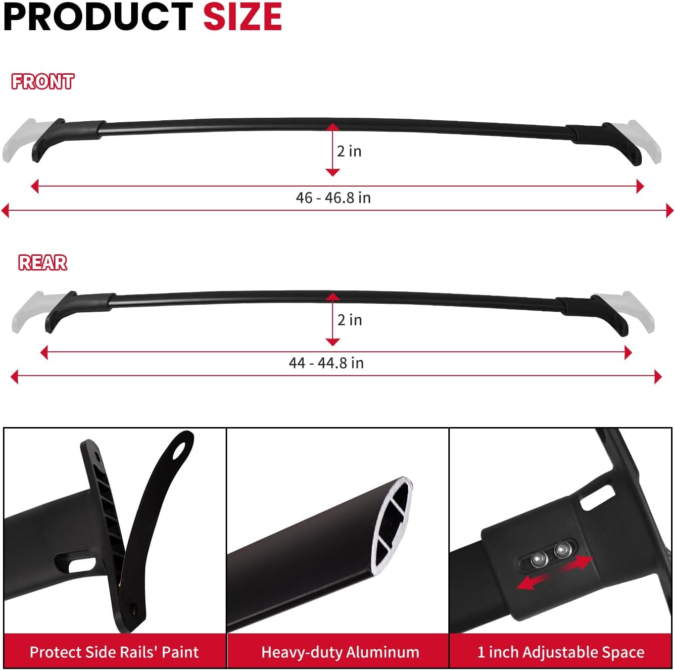 Material: The crossbars (roof luggage rack) are made of high-quality aluminum alloy, and the heads are made of nylon material, Equipped with sponge pads which can effectively protect the car body paint