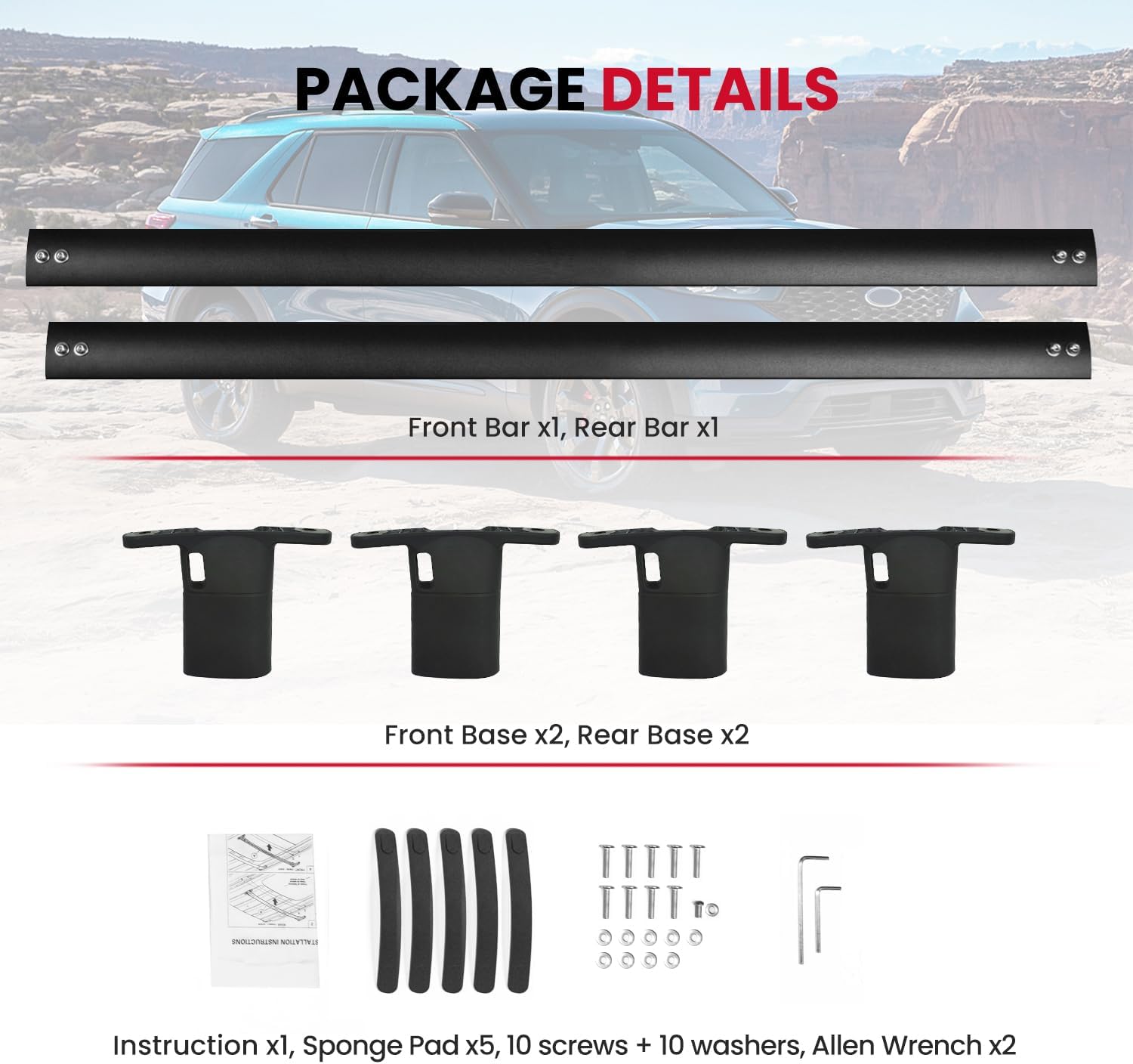 Fitment: Compatible with Ford 2016 2017 2018 2019 Explorer (with side rails),including Base/ XLT/ Limited/ Sport/ Platinum(NOT fit for Escape/ Edge and any other models), Before purchasing, make sure that your vehicle is within this applicable range,providing a better fit compared to universal options
