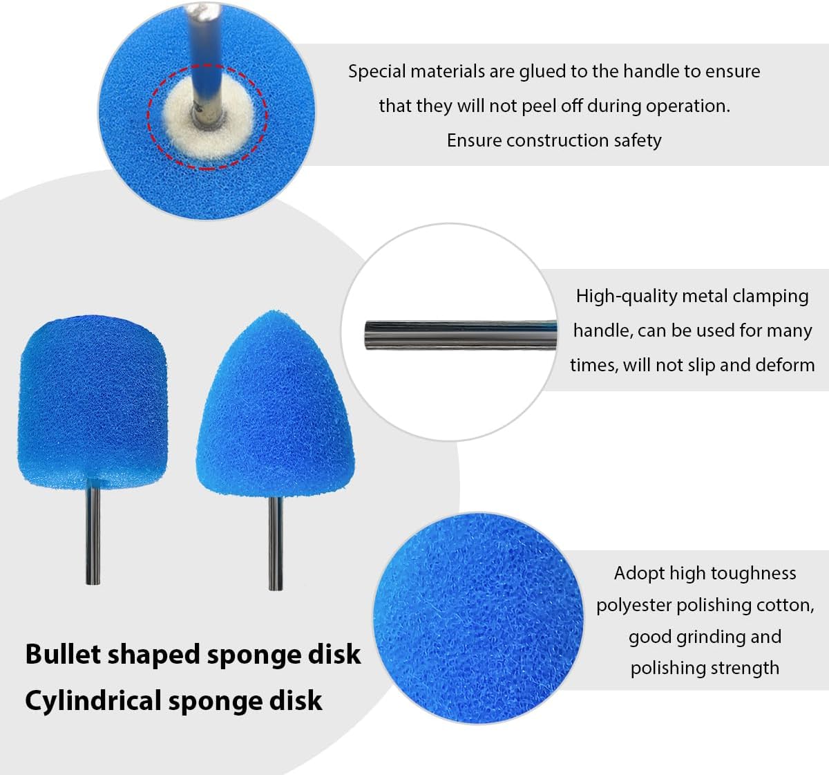 Package Includes: 3 Cylindrical Polishing Sponges, 3 Cone Sponges, 6 Round Sponges, 2 Wool Polishing Discs, 2 Lining Plates