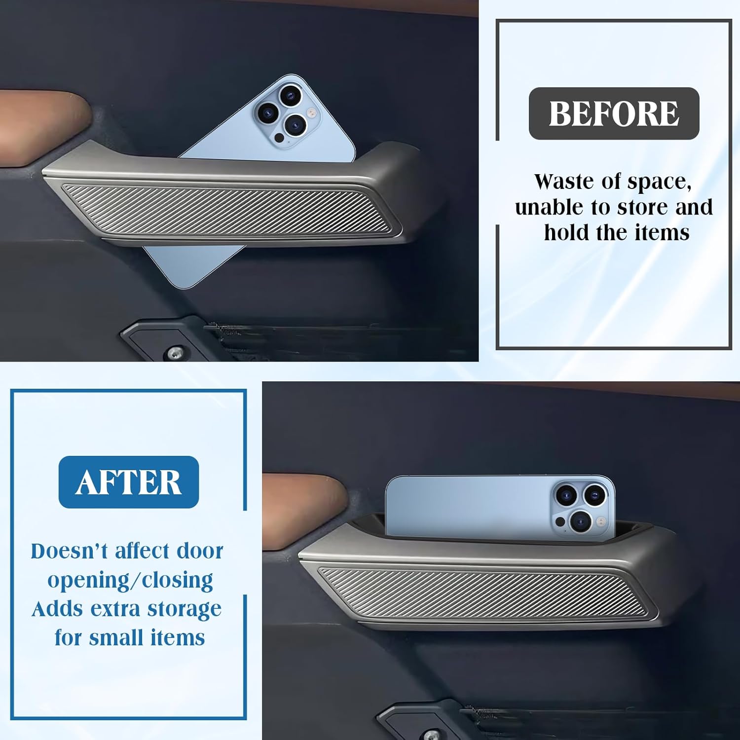 Blends with Interior: Made of premium ABS plastic, these 4-door handle storage organizer fit for Ford Bronco 2021 – 2025 resist daily wear without fading or warping. Matte black finish complements your interior, while the slim profile keeps essentials within reach and hidden from view.
