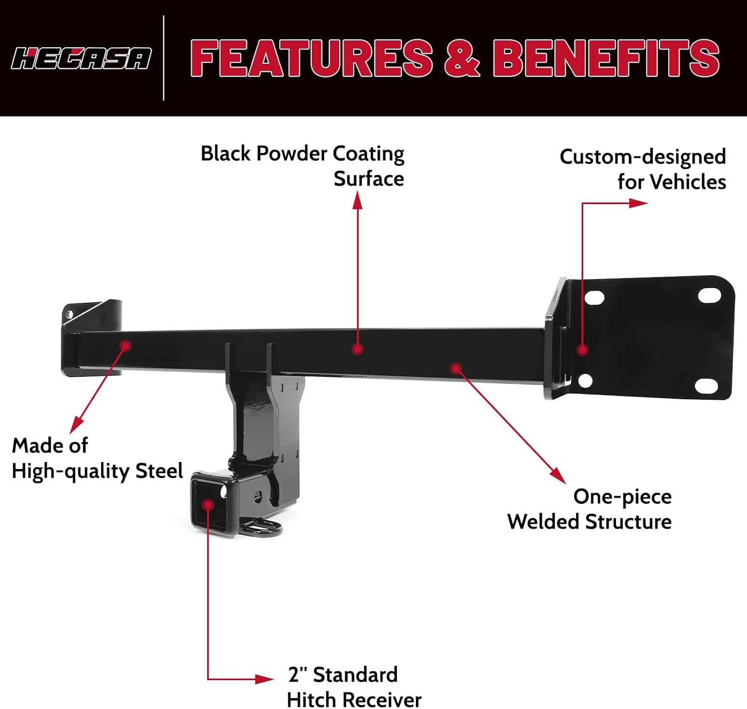 2″ Class 3 Trailer Hitch Receiver Compatible with 2021-2022 Ford Bronco Sport Except First Edition Steel Powder Coated