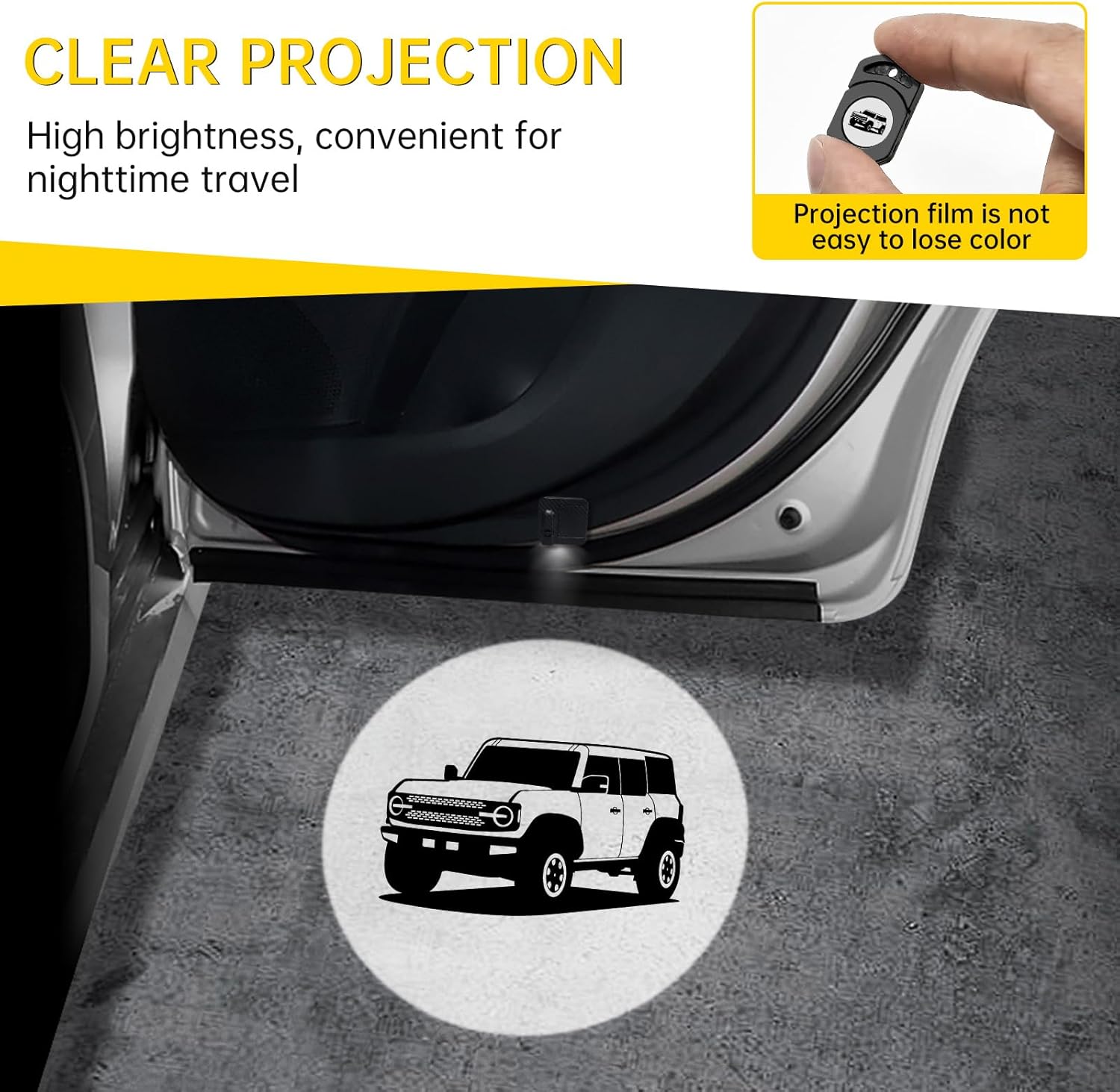 2 Pack LED Car Door Welcome Lights Projector Logo Light Ghost Shadow Lamp for Ford Bronco 2021 2022 2023 2024 2/4-Door Accessories