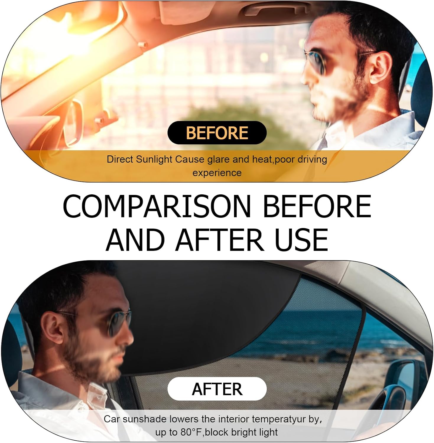 Clear Visibility: Unlike traditional shades, these sunshade for car windows maintains a transparent mesh view, meaning they never obstruct your driving vision. You can enjoy a clear view of the surroundings while still benefiting from the shade. Ideal for daily commutes and long road trips alike.
