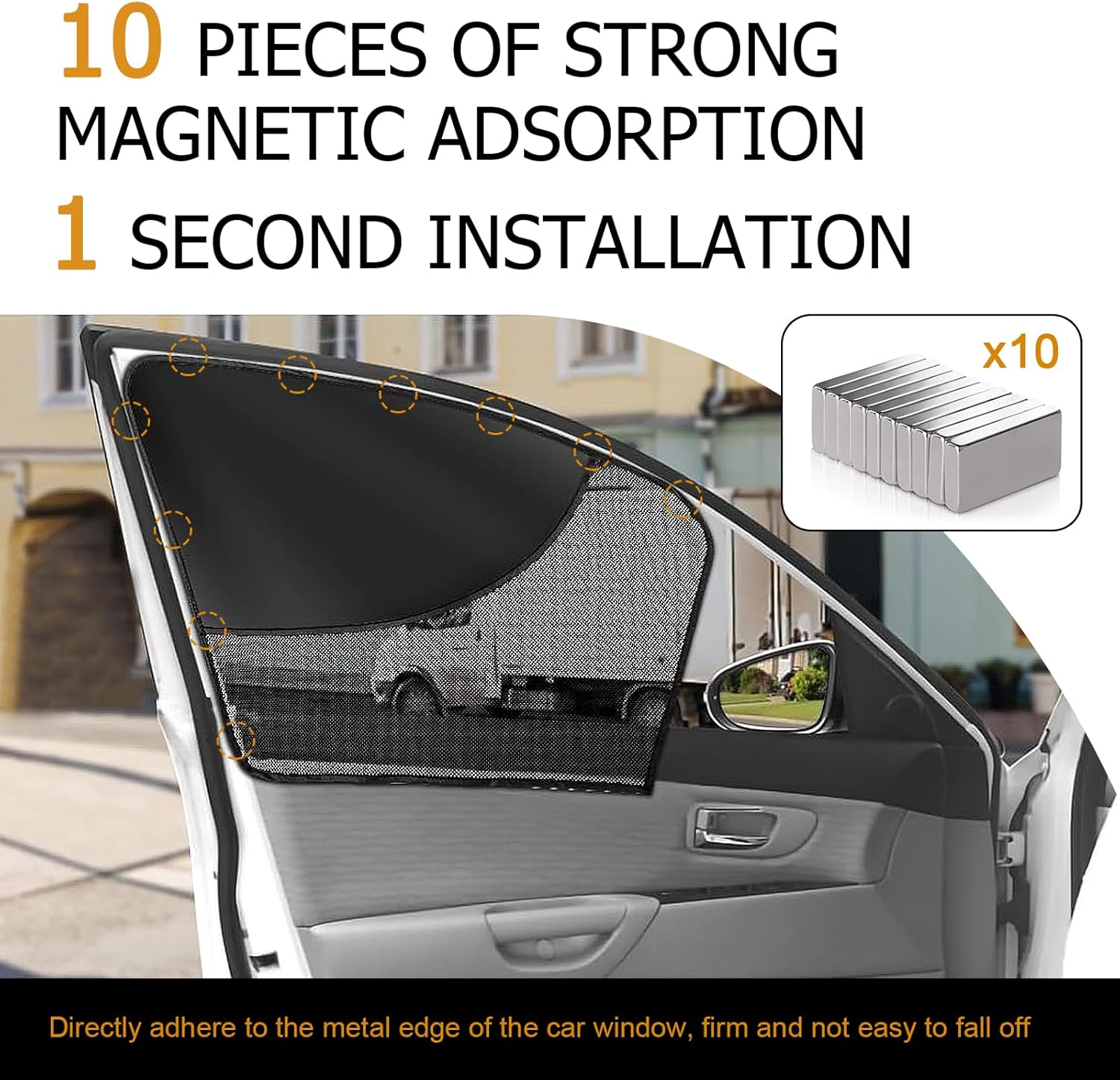 Easy Installation: The car sun shades come with ten strong attractive attachments, making installation easy. Simply place the shades against your car’s side windows and let the attractors do the work. No tools required, no hassle. They are designed to be universal, fitting cars, trucks, SUVs and more. Removable and reusable for hassle-free car sun shade adjustments.