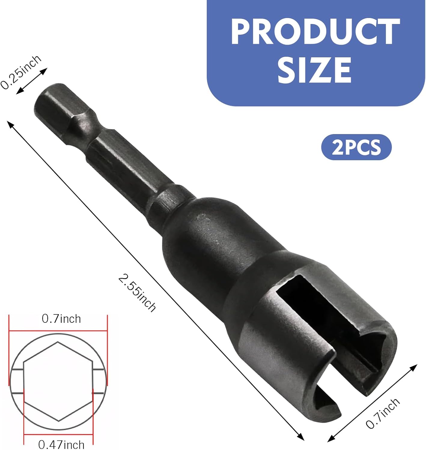 Product Details: The set includes 2 hexagonal handle screwdriver socket wrenches, with a height of 2.5 inch/65 mm, an upper width of 0.2 inch/6.3 mm, and a lower width of 0.7 inch/18 mm. The compact size is easy to store, balancing operational convenience and portability.