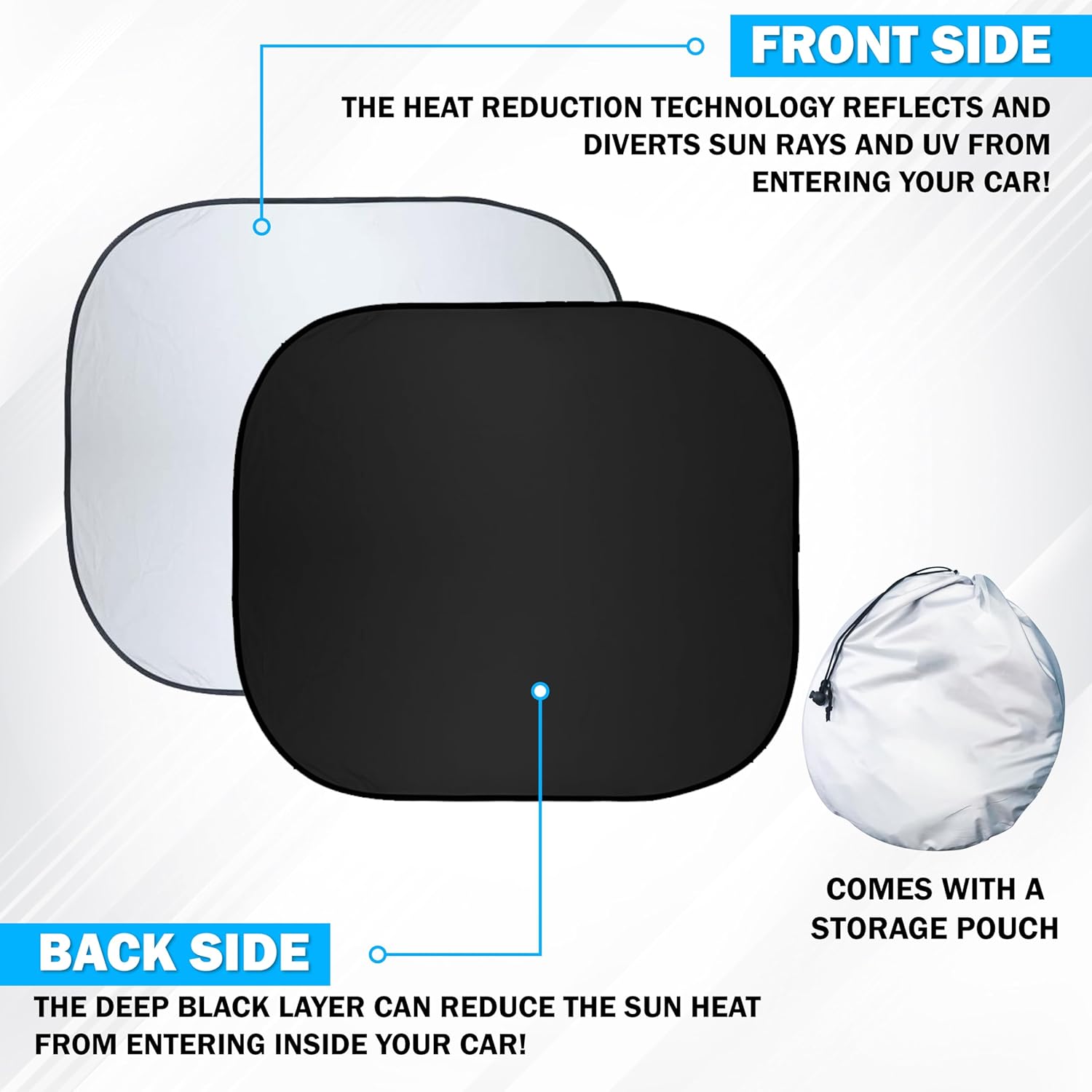 Ultimate Sun Protection: The Autovir 2-Piece Windshield Sun Shade provides unmatched sun protection for the car windshield. It is made of high grade polyester fabric which protects your car against harsh UV rays by lowering the temperature within the car.