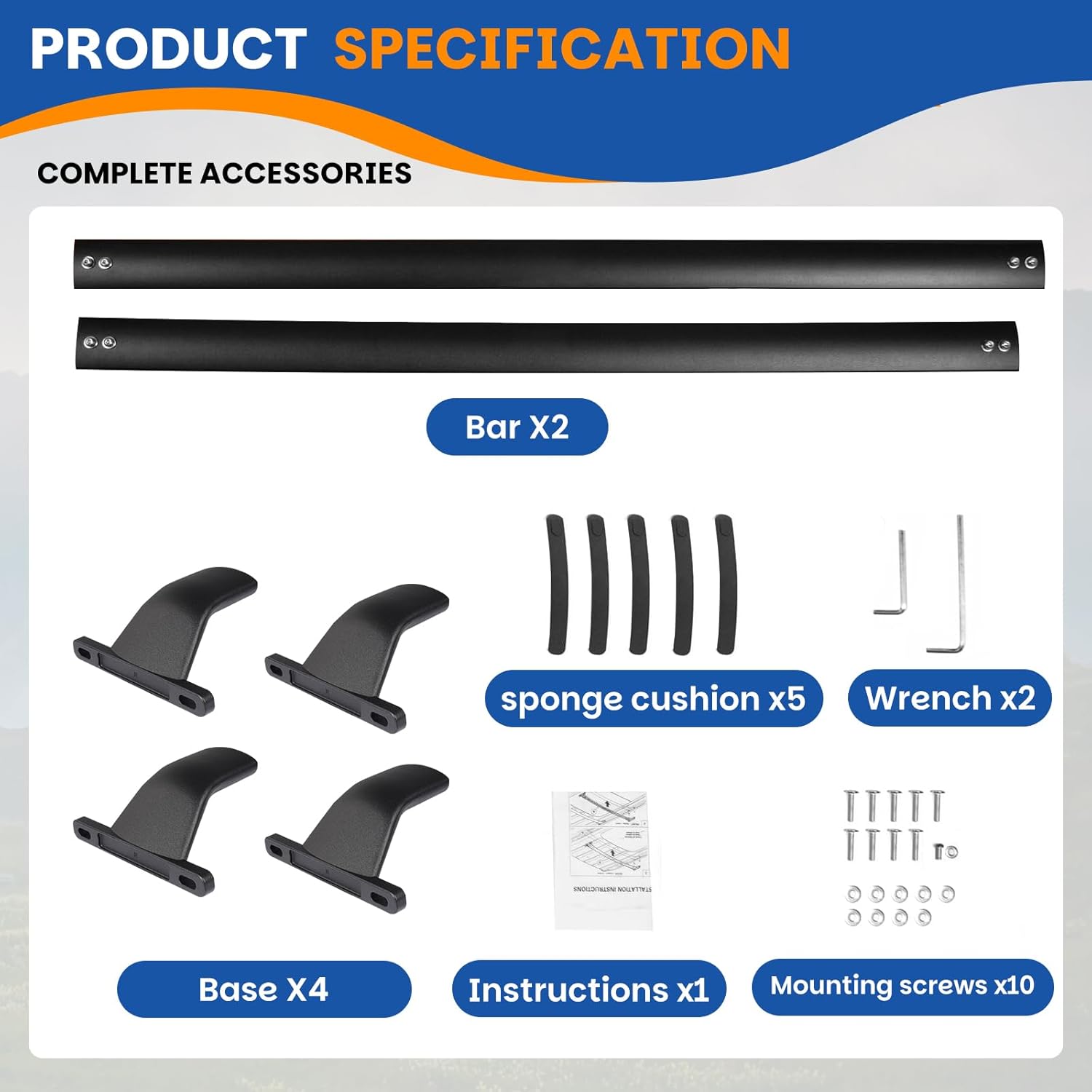 Easy to Assemble: The package includes a pair of crossbars, four mounting bases, spare parts, installation tools. No drilling or cutting is required. Included instructions and Clear directions and markings on the product make it easy to install by yourself