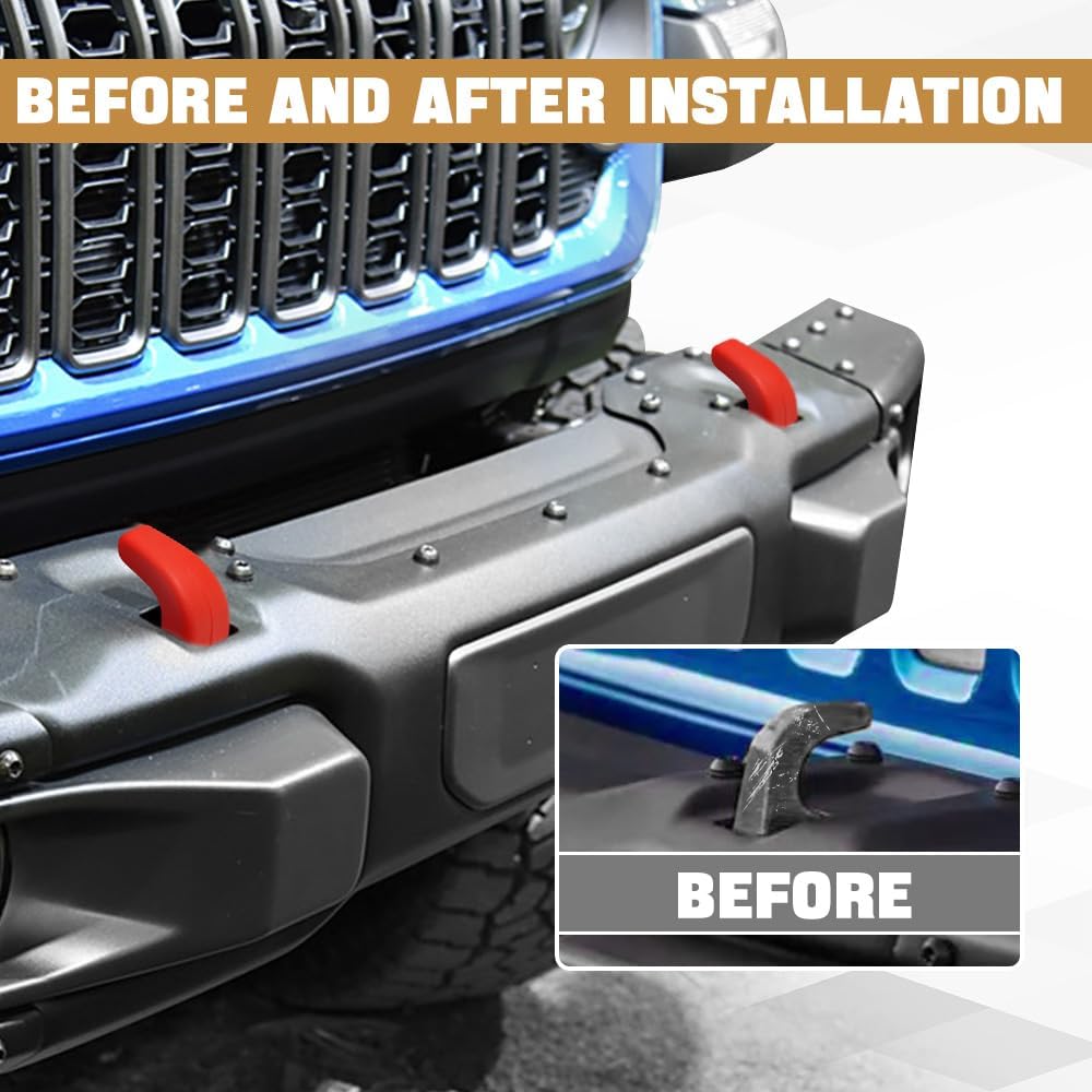 【Scope of Compatibility】: You will receive 1 pair front bumper tow hook covers, which are vehicle specific and only compatible with Wrangler JK JL & Gladiator TJ 2007-2024. Please make sure the shape, size, model and year match before placing your order.