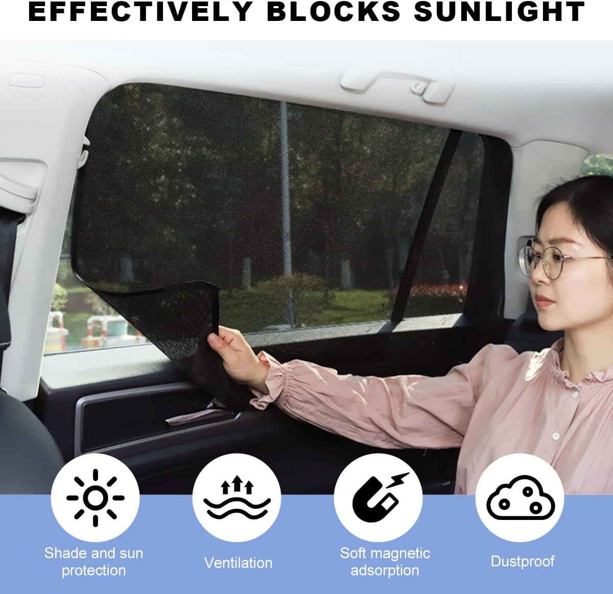 Easy Installation: With the built-in magnets, these car window cling sunshades are easy to mount, making them flexible to use. The sunroof sunshade is mounted on the outside of the roof, and the side window screen is mounted on the inside of the door frame