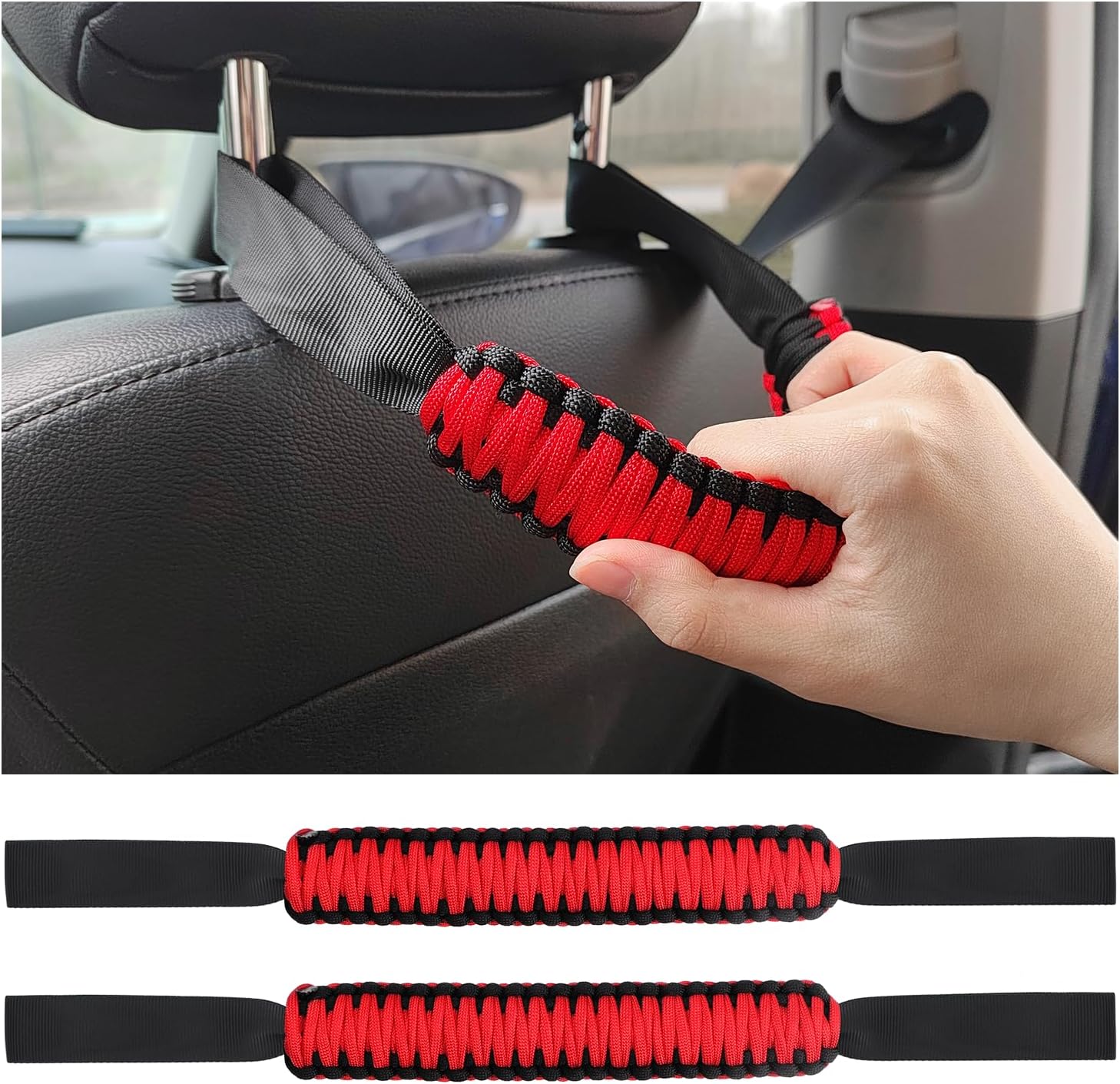 2PCS Headrest Grab Handle for Cars,Removable&Durable Rear Seat Grab Handles for Trucks Cars SUVs Pickups,Universal Interior Car Accessories(Red)