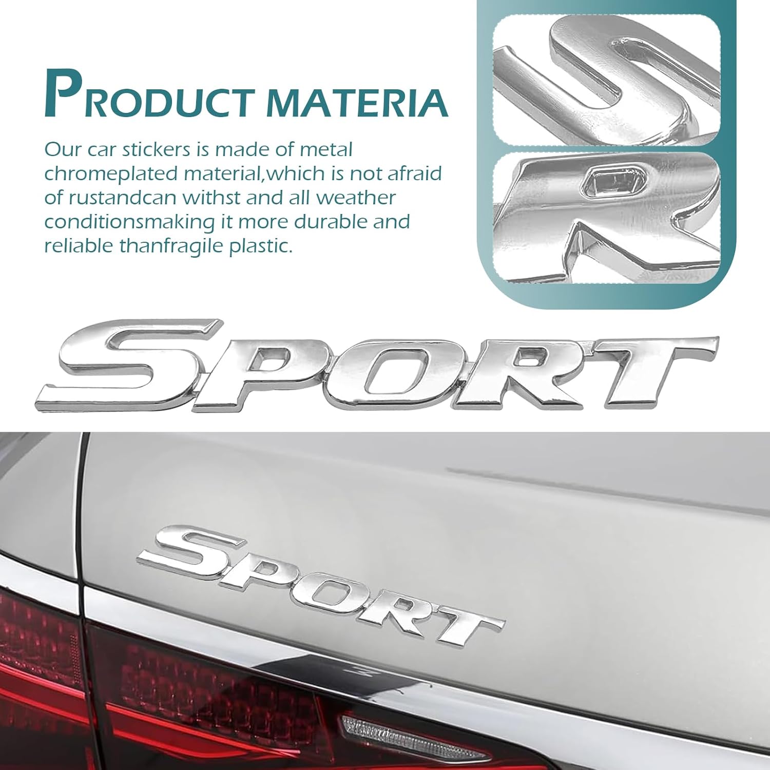 Metal-plated Material: This 3D metallic sports sticker features a corrosion-resistant surface made from premium metal plating. It is waterproof and rust-resistant, and can withstand rain, UV rays, and will stay shiny and new even on vehicles driven daily.