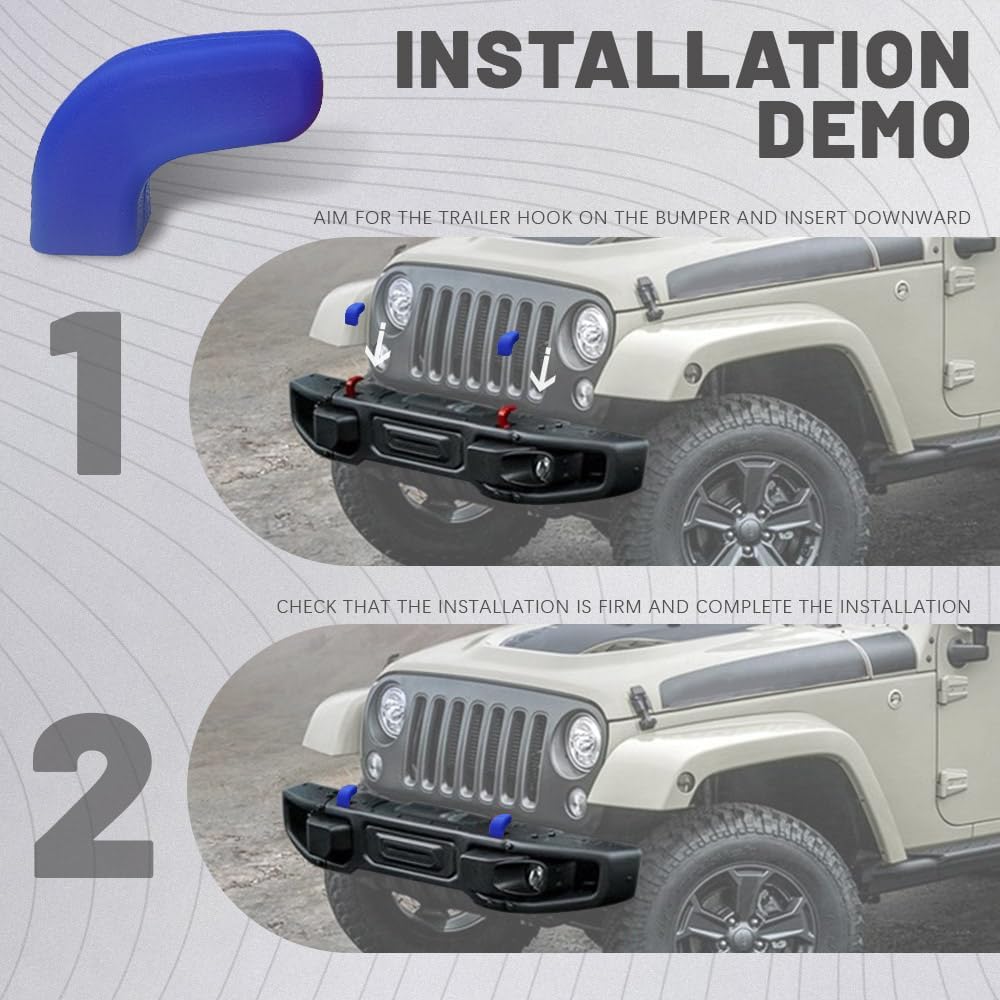 [Easy installation] : The front bumper tow hook protector can be installed directly without cutting or any modification. Simply slide the traction hook protector onto the traction hook and adjust the position to complete the installation. (Tip: Heat it slightly with a hair dryer before installation to get better elasticity and ductility for quick installation.)