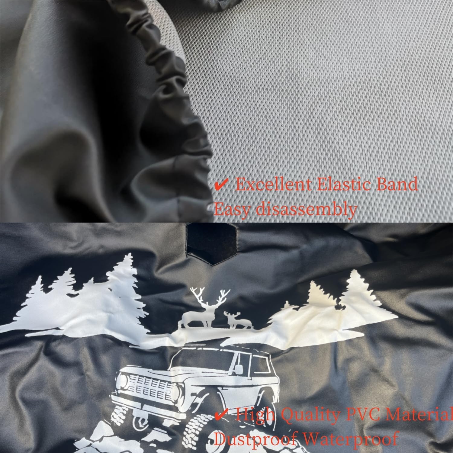 With PVC material, waterproof, dust-proof, scratch-resistant and durable. Classic retro style, an indispensable spare tire cover when you are on an off-road vacation.
