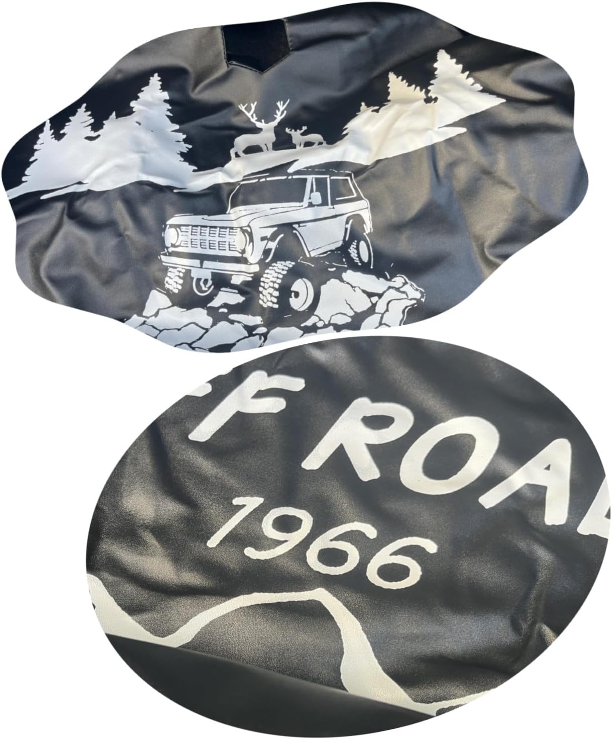【Design】This jungle landscape tire covers mountains, deer and jungle.We designed the 1966 mountain peak pattern on the spare tire cover.Strongly Improves Your Vehicle Appearance And Let The Adventure Begin.