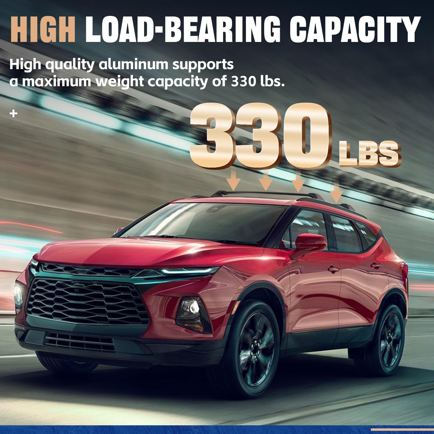 Heavy-Duty 330 lbs Capacity:Built with extra-thick aluminum, these rugged crossbars safely hold up to 330 lbs. Securely transport bikes, kayaks, rooftop cargo boxes, or camping gear for weekend adventures or family road trips.