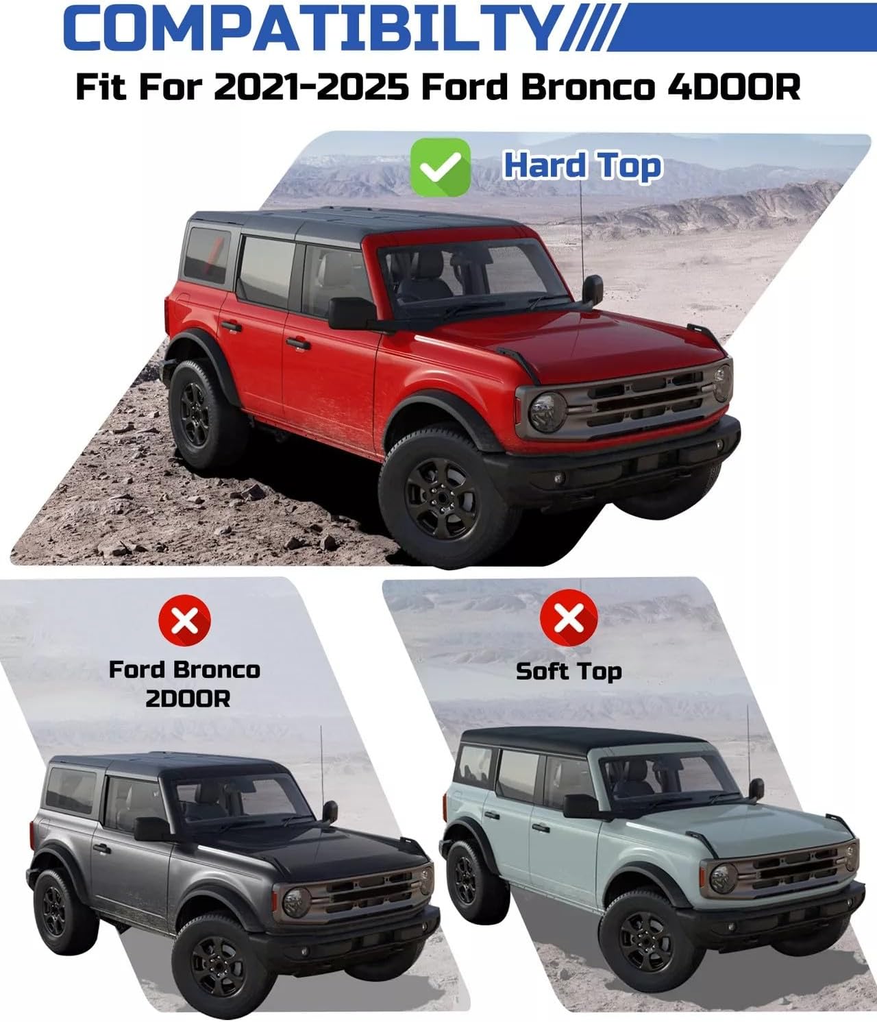 Fitment: Compatible for 2021 2022 2023 2024 2025 Ford Bronco 4 Door Hard Top