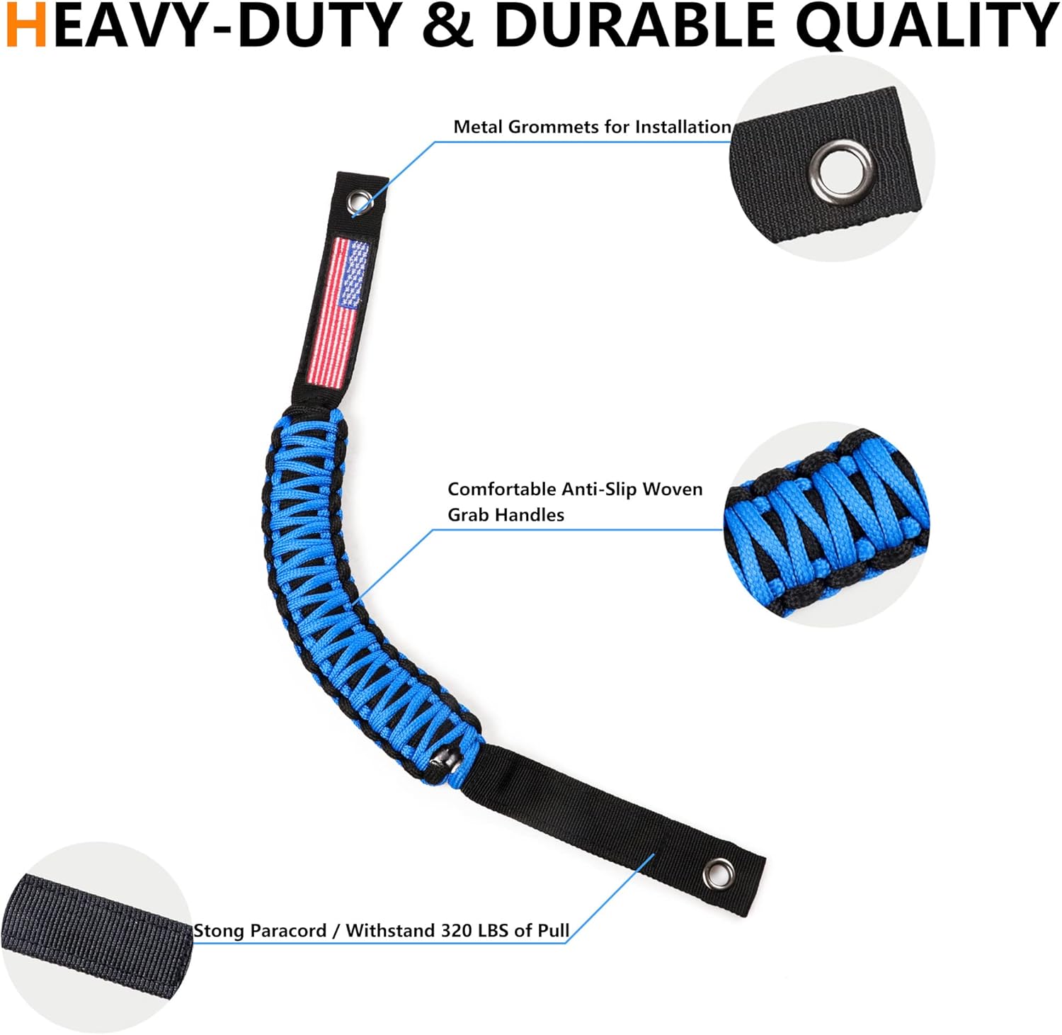 Made of high-intensity paracord & quality metal grommets can withstand more than 300 lbs, which give you more security when bumpy roads driving and doorless driving, and give you strong support when getting in or out of the vehicle.