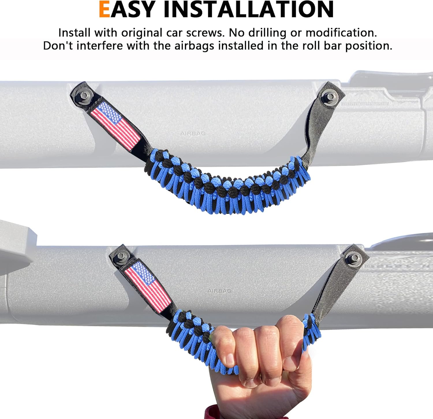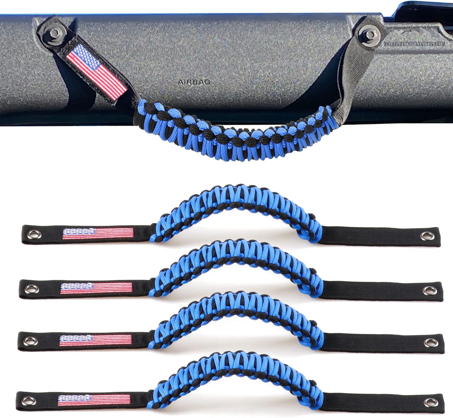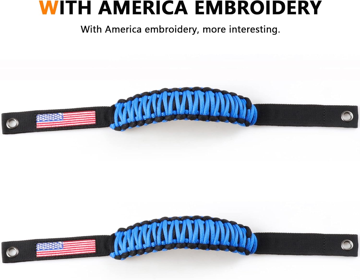 4 Pack Grab Handles for Ford Bronco Accessories 2021 2022 2023 2024 2025 2 Door 4 Door Interior Paracord Roll Bar Grip Door Handle with America Flag Blue