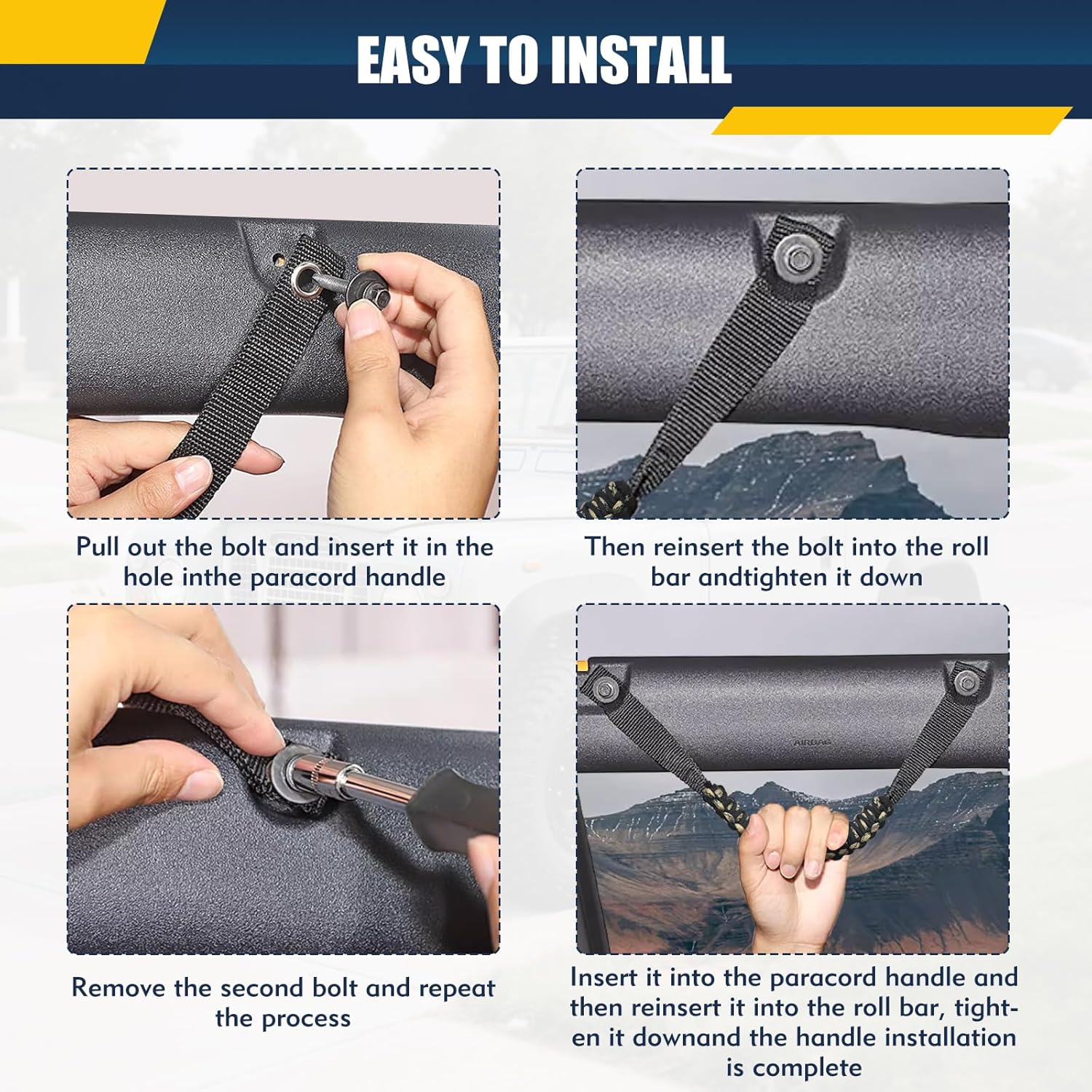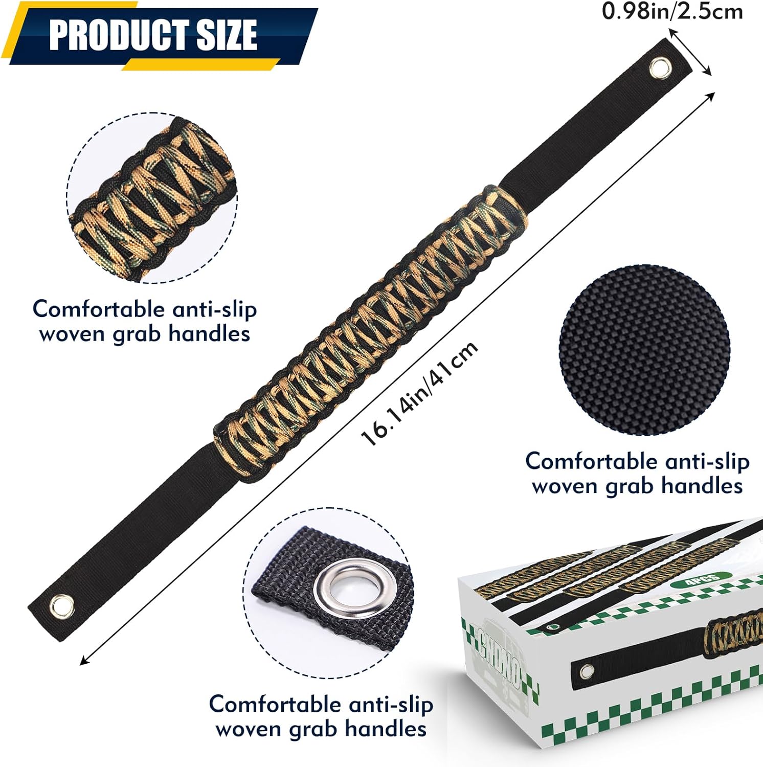 Durable Non-Slip Design: Constructed from sturdy paracord and equipped with a metal buckle, these roll bar grab handles offer exceptional durability and strength. Their non-slip texture ensures a firm grip even in challenging conditions or with sweaty palms, giving you confidence during your outdoor excursions.