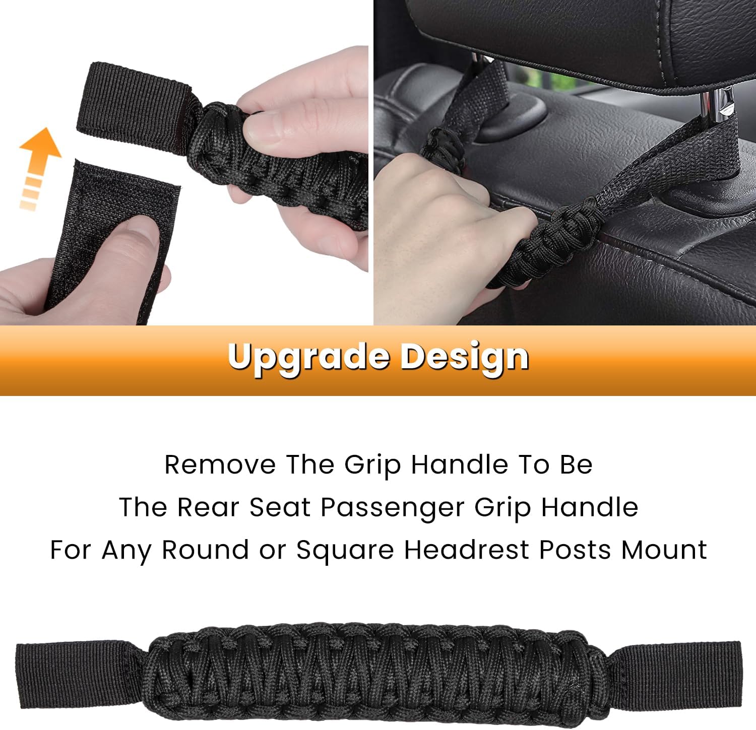 4 x Roll Bar Grab Handles Grip Handle for Jeep Wrangler JK JKU JL JLU TJ YJ Sports Sahara Freedom Rubicon Unlimited Gladiator JT 1955-2023 UTV ATV Premium 550 Paracord Interior Accessories (Black)