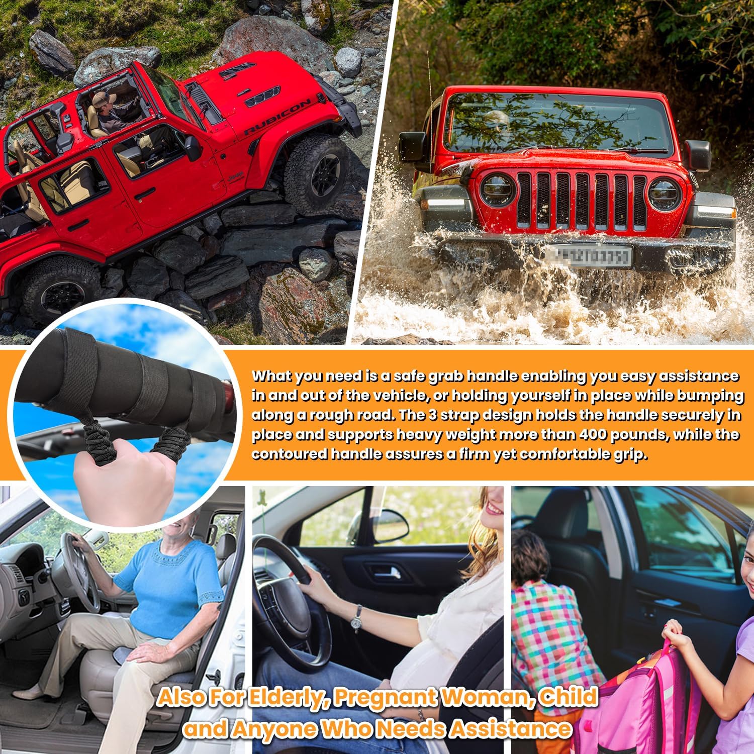 Perfect Design — Ergonomic handle design provides comfortable and non-slip grip. The 3 straps design holds the handle securely in place and supports heavy weight. Enabling you easy assistance in and out of the vehicle, or holding yourself in place while bumping along a rough road.
