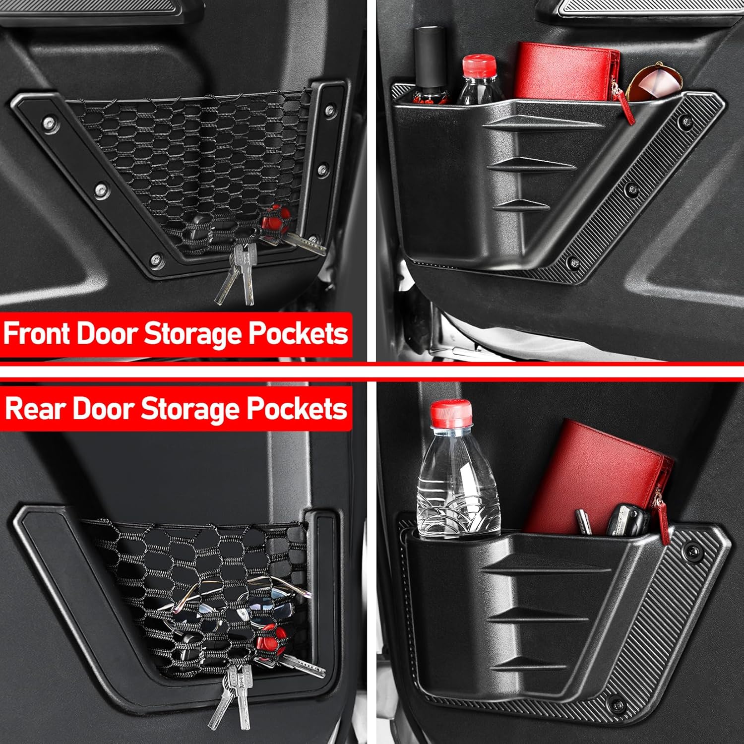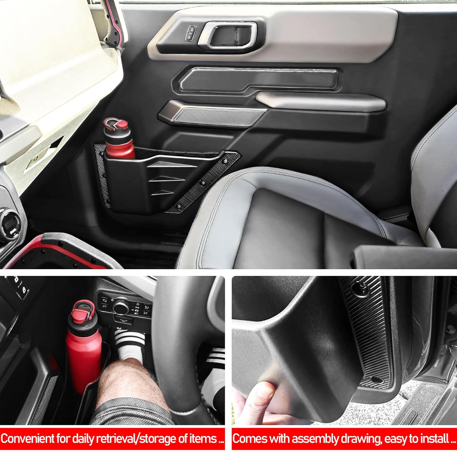 4PCS Front and Rear Door Storage Pockets Compatible for Ford Bronco Accessories 2025,Side Cup Holder Fit Bronco 4-Door 2021 2022 2023 2024,Interior Organizer Box Accessories,4PCS Black
