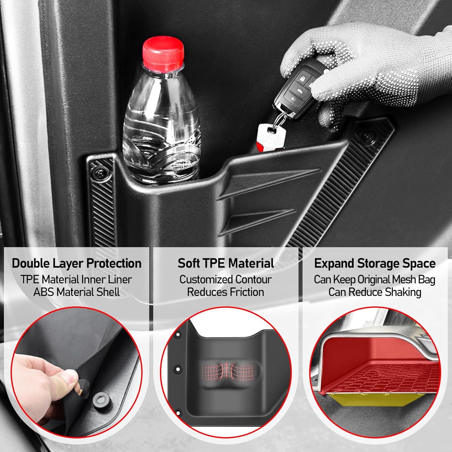 Increase Storage Space:The door storage boxs is designed for the Ford Bronco 4-door, makes full use of door space to boost in-car storage, letting owners store small items like phones, wallets, and keys, keeping the car interior tidy(Not for 2-Door or Sport)