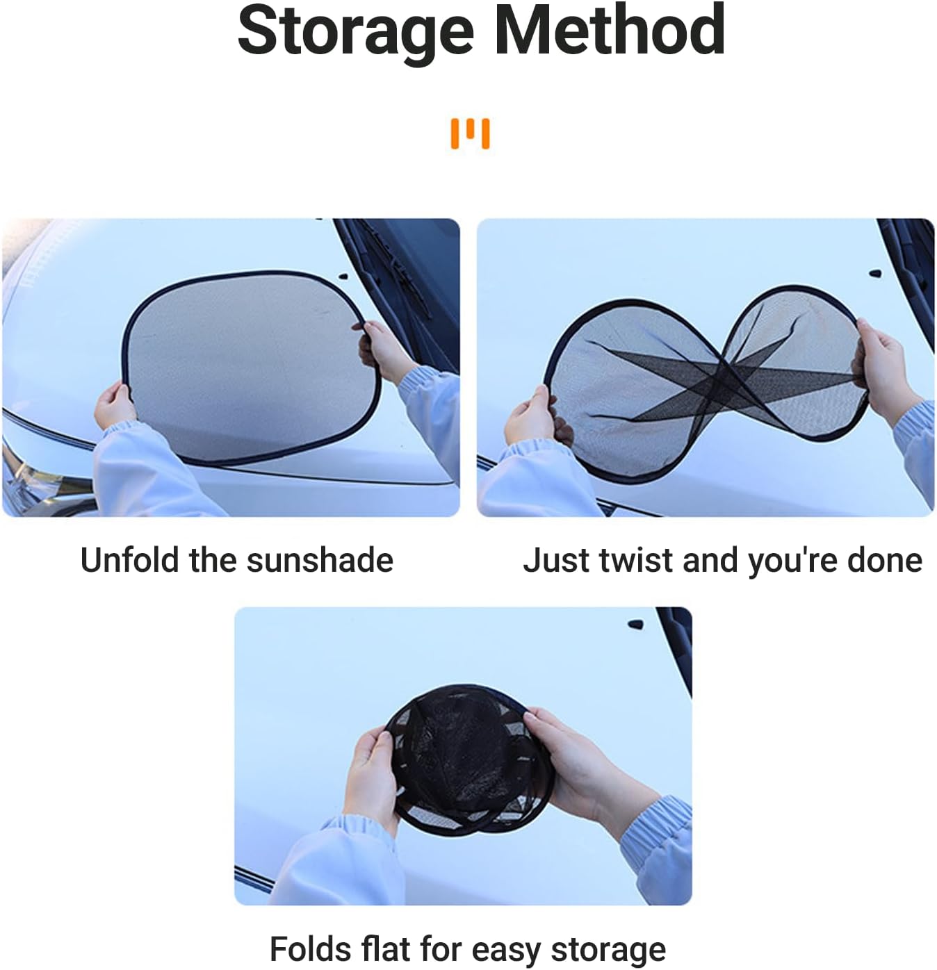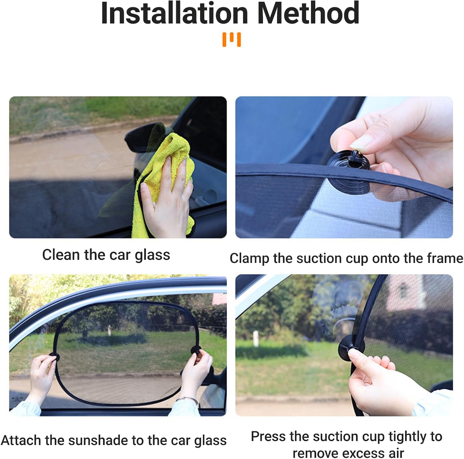 Easy to Store: The sunshade adopts a high-elastic memory metal frame, which will not deform after long-term use. It is easy to store and does not take up space in the glove box, so it can be used at any time. Comes with a suction cup for installation. Clamp the suction cup to the frame of the sunshade cover and then attach it to the glass. The suction cup is cleanable and reusable.
