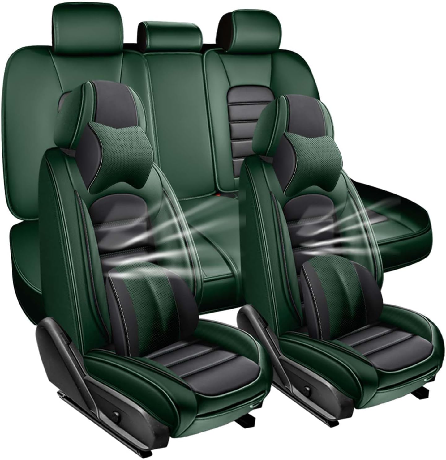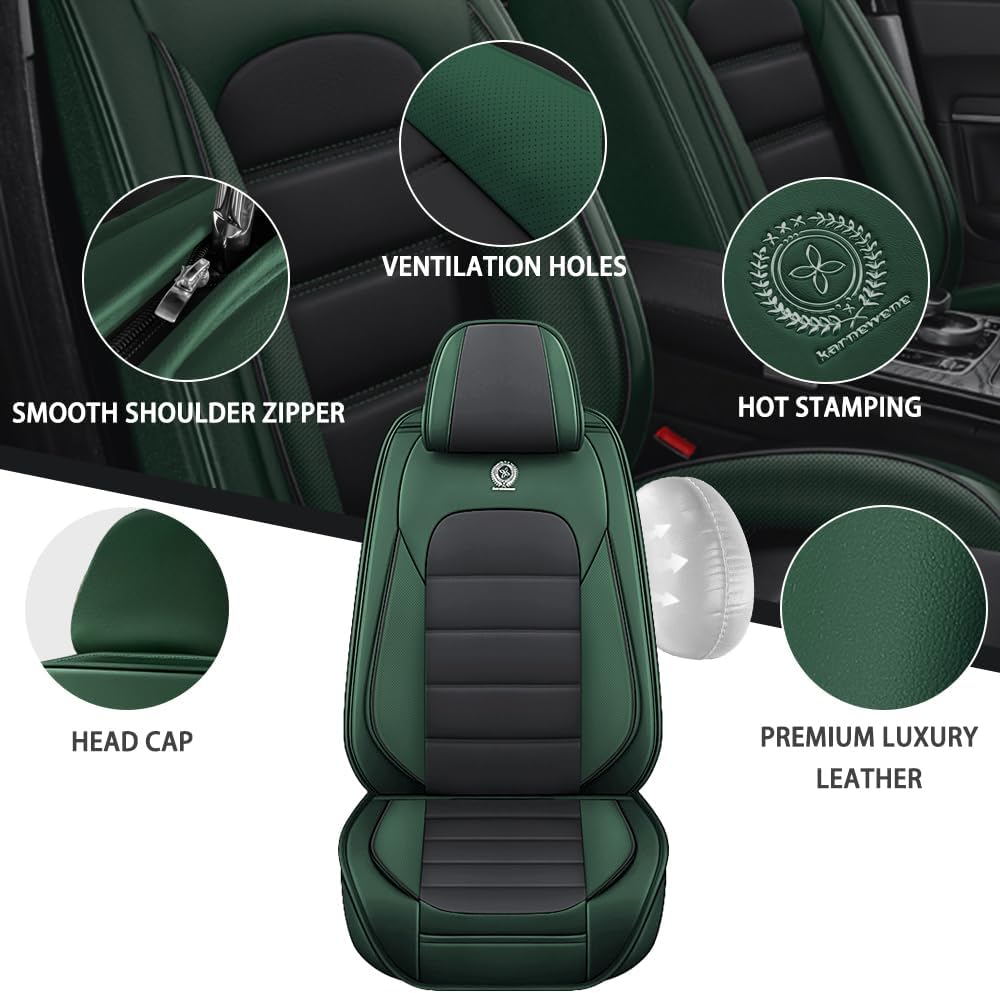 5-Seats Car Seat Covers for Ford Bronco Sport 2021-2024 Leather Auto Vehicle Seat Covers Excellent Quality Car Seat Cover,Waterproof Anti-Slip Seat Cover Airbag Compatible(Black&Green-Luxury)