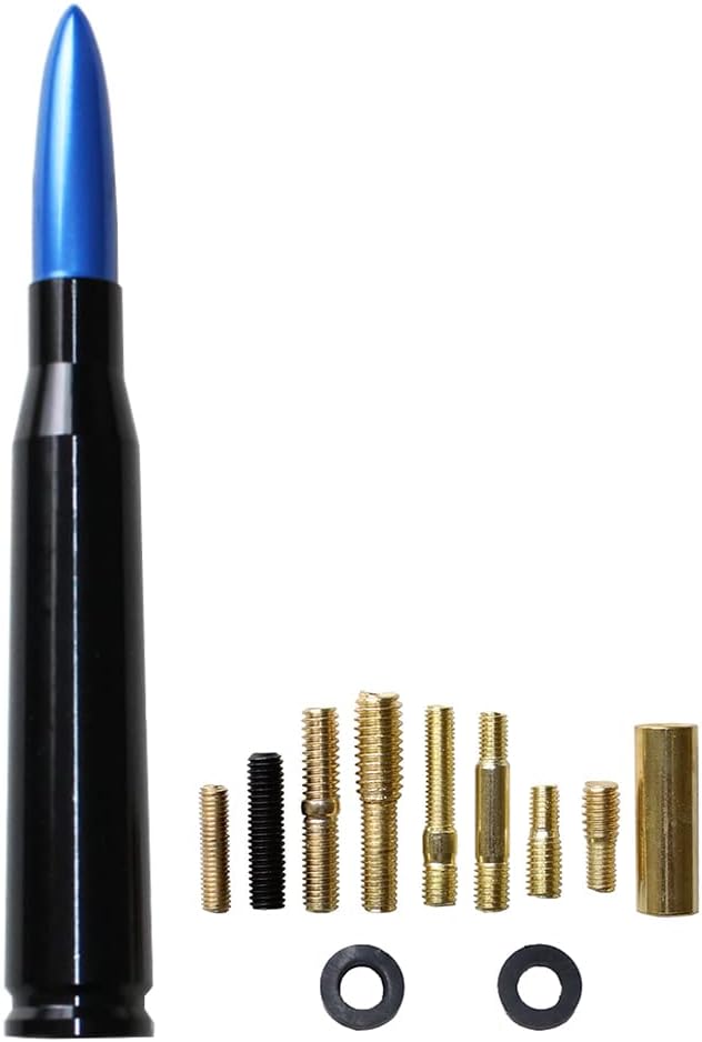 50 Cal Bullet Antenna Ford F150 F250 F350 Dodge Ram 1500 2500 Jeep Wrangler Toyota Tundra(Blue)