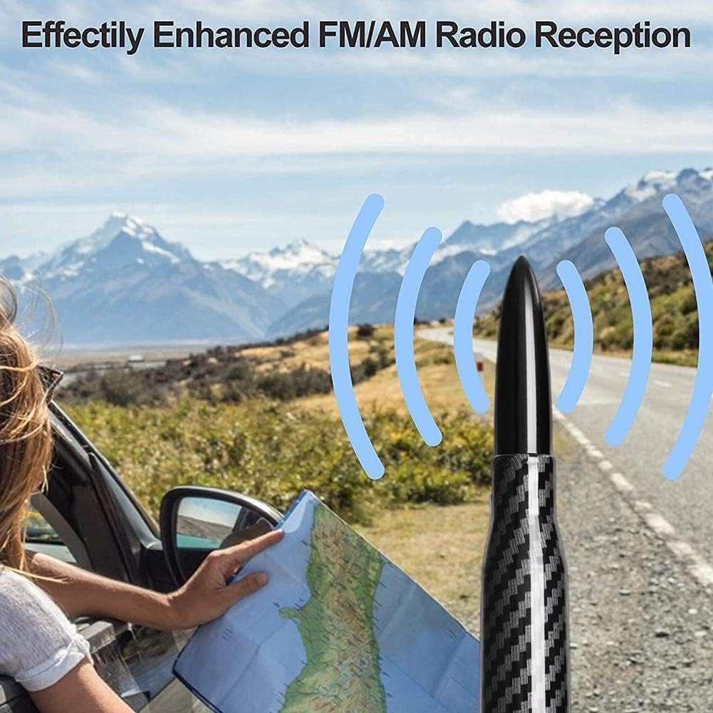 3.UNIQUE DESIGN: Carbon Fiber design, the bullet-shaped antenna with smooth curve and smooth appearance is additionally suitable for pickup trucks, off-road vehicles, the short antenna will not bend or snap when you go through the auto car wash.