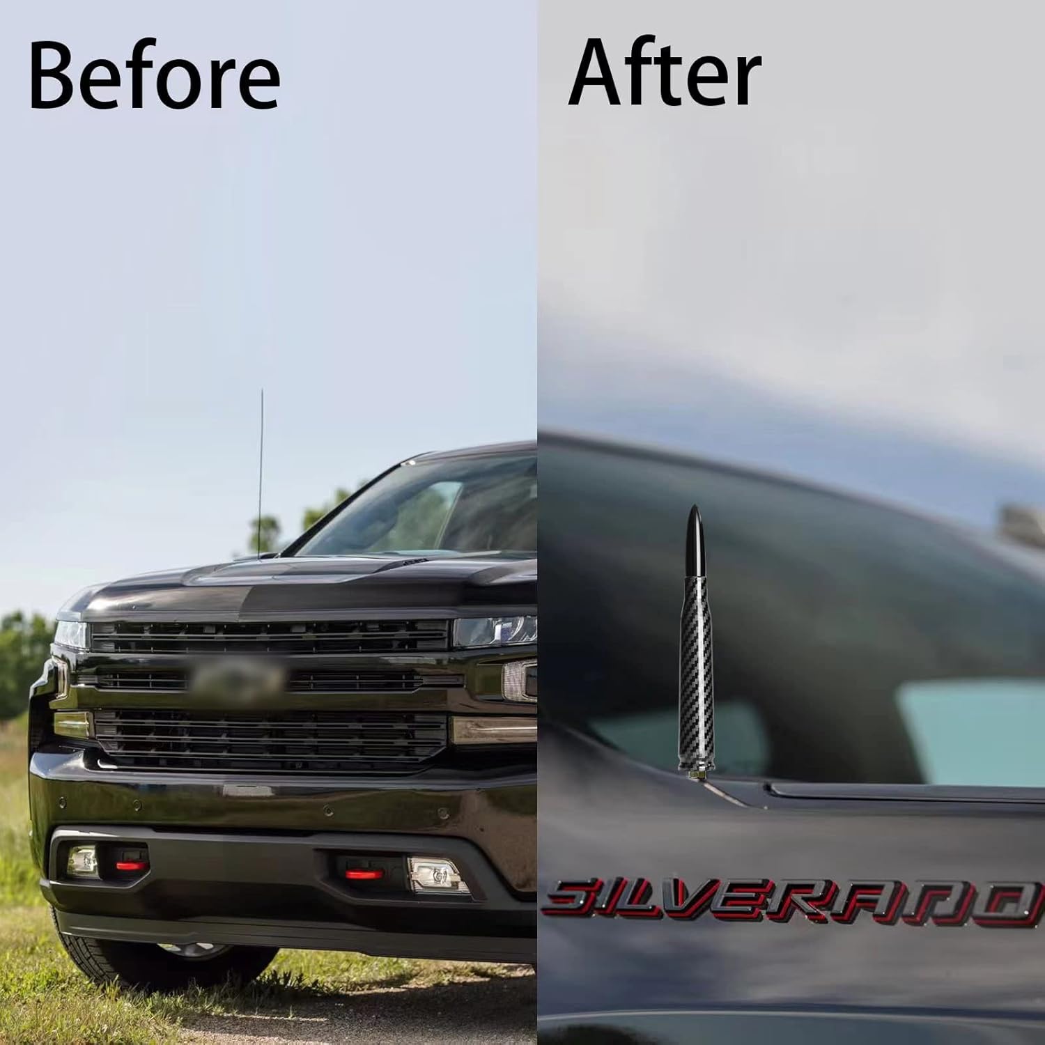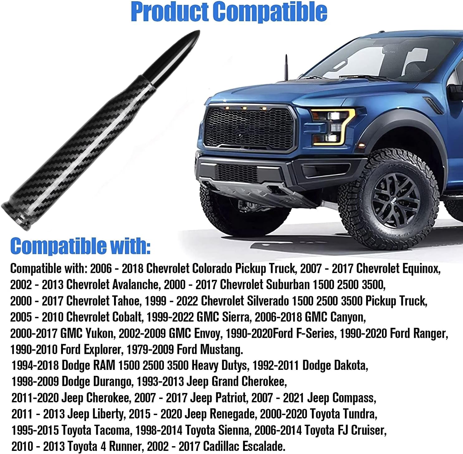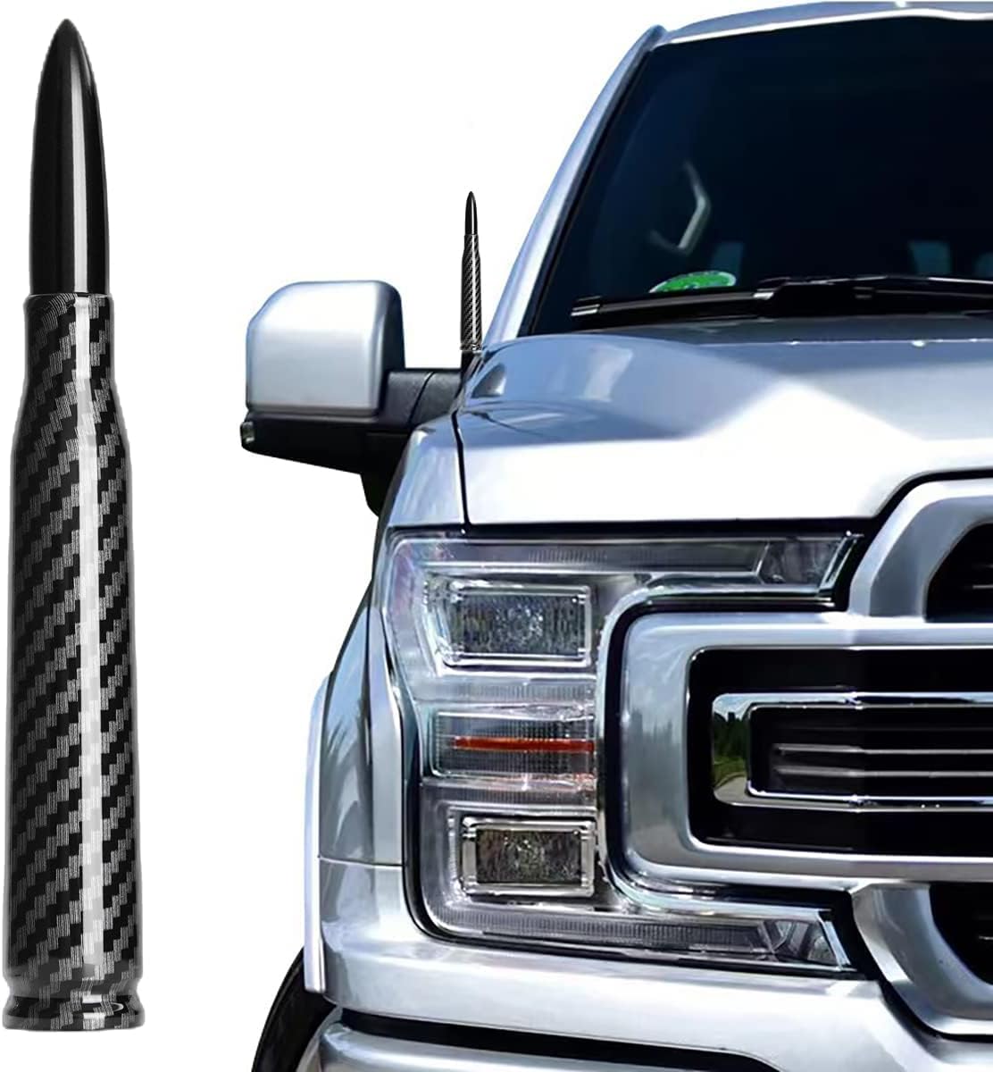 50 Cal Truck Bullet Antenna Carbon Fiber Design Compatible with Ford F150 F250 F350, Dodge RAM 1500, Chevy Silverado,GMC Sierra, Jeep Wrangler/Gladiator, Toyota Tundra/Tacoma.1990-Current.