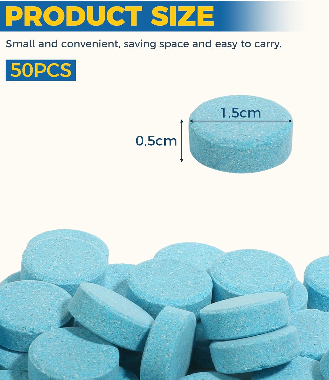 [Set Includes]There are approximately 50 concentrated detergent tablets in the packaging. Sufficient quantity to meet your daily needs. Please note that this is a summer formula that requires temperatures above -5 ℃ (23 ℉) To enhance the cleaning performance in winter, it can be mixed with antifreeze. In addition, please keep the product out of reach of children and pets. If it comes into contact with the eyes, rinse immediately with water.