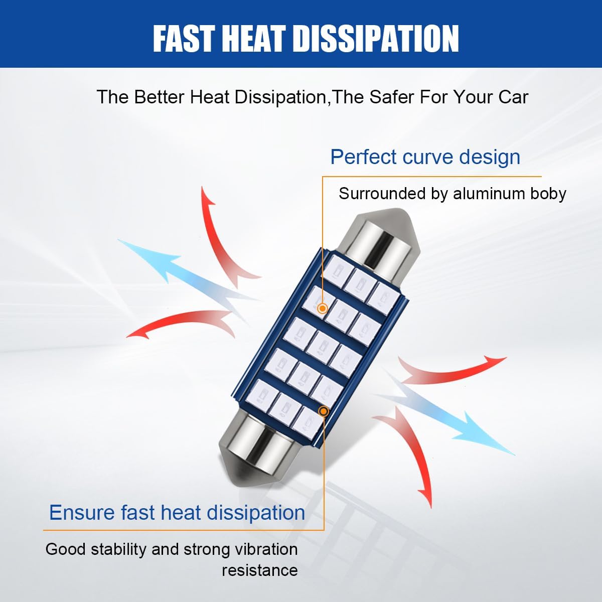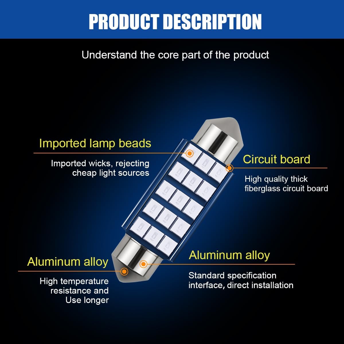 【Easy Installation】:Equipped with a plug-and-play design, replace the old bulb and insert the new one. It perfectly replaces 41mm 42mm/1.6inch bulbs with an integrated CANbus decoder to prevent dashboard errors or flickering.