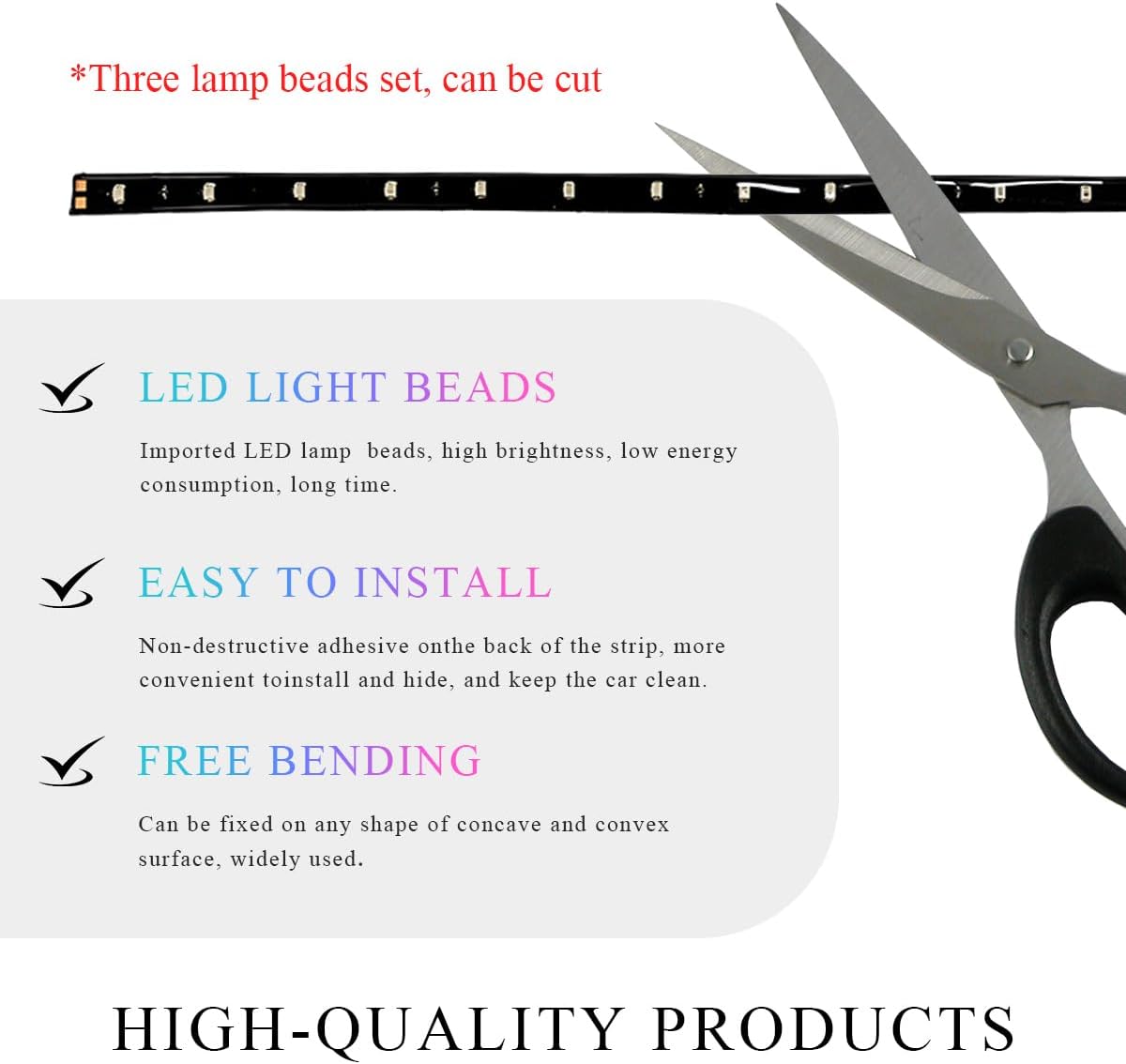 【Multiple Function】: On the one hand, this light strip can be used to illuminate places like the trunk and bottom of the car. On the other hand, it is available in a variety of color styles and can be used as a decorative light to dress up the interior and exterior of your car.